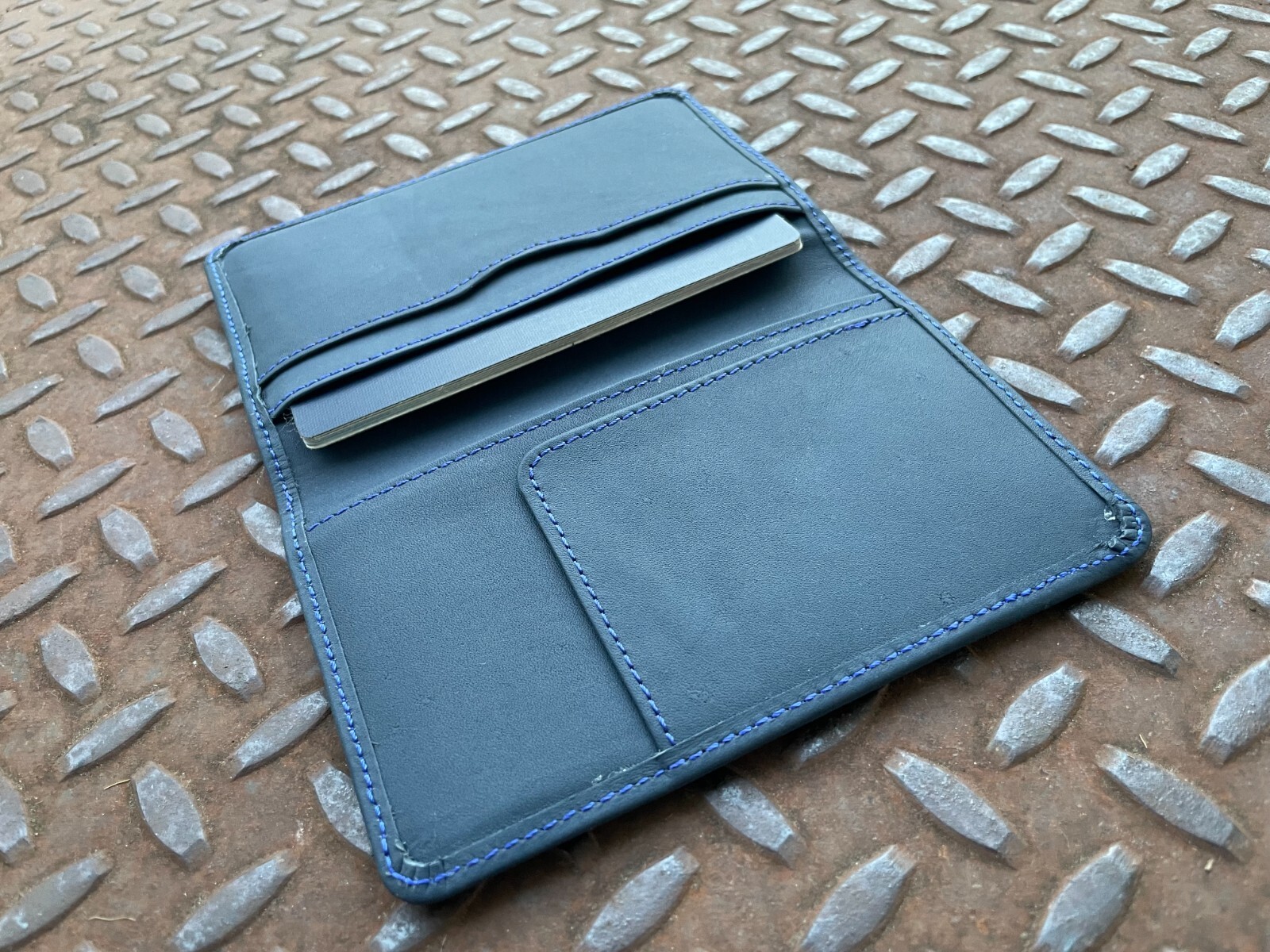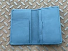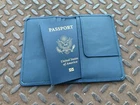 Passport Holder Blue Leather Card Holder Travel Documents Wallet Handmade Handmade Color: Blue Genuine Leather Size: 6 X 4 inches (closed) 6 X 8 inches (opened) Made in Pakistan Brand New. never used.