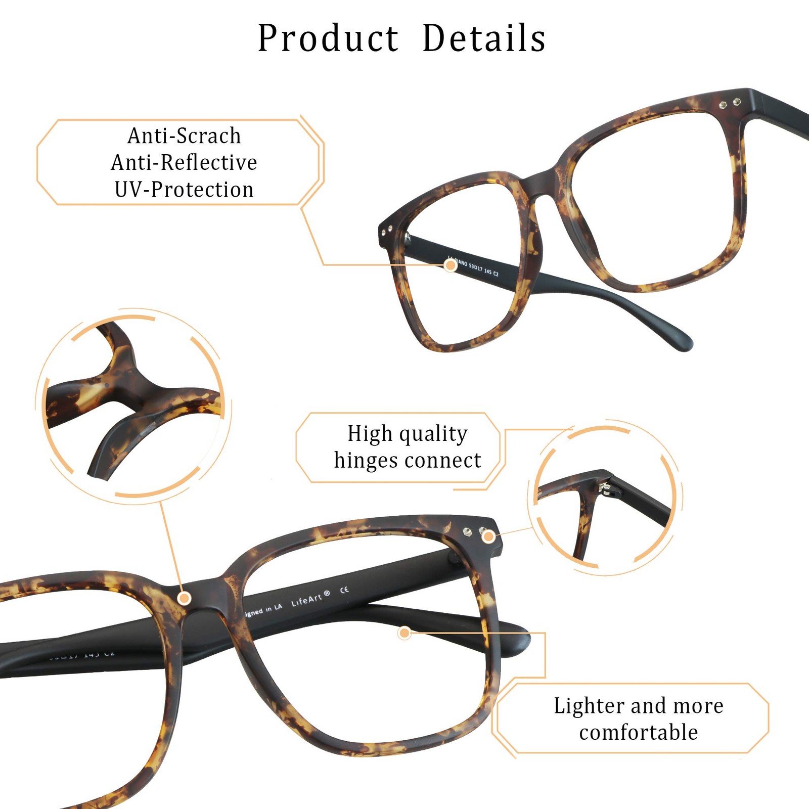 Enjoy clear eyes with blue light blocking glasses designed for reading, regular computer use, and video gaming. When you spend hours looking at a computer screen for reading, work, or even gaming, it can start to put a heavy strain on your eyes that leads to dryness, fatigue, blurry vision. That’s why it’s important to protect them with Blue Light Blocking Glasses that help reduce the affects of blue light and glares on your screen to make it easier to see clearly and concentrate more effectively. Crafted with a lightweight, unisex frame and featuring clear lenses, these are the perfect choice for protecting your vision, enjoying longer gaming or reading sessions, and still staying stylish when you’re at home or on the go. Product Details: Blue Light Blocking Glasses HD Clarity Anti-Glare Lenses Lightweight, Comfortable Frame Help Reduce Eye Fatigue and Strain Gender Neutral (Men and Women) Order Includes: Eyeglasses Soft Cleaning Cloth Hard Protection Storage Case Silicone Ear Hooks Small Screwdriver Blue Light Blocking Test Tools Protect your long-term vision health by blocking harmful blue light with anti-glare blue light blocking glasses from by clicking Add to Cart above now. Reflect and filter blue light, prevent color distortion, 7-layer anti-reflective coating to reflect and filter blue light, reduce eyestrain and sleep better. High light transmittance with no noticeable yellow tint to prevent color distortion, minimize glare from digital screens. Thinner and durable, the multi-layer coating is combined into a single layer with a thickness of only 10um, increases the surface hardness of the lens, prevent scratches and abrasion. Magnification glasses option, with +0.25 to + 6.0 magnified lenses, helps you more clearly see objects that are 12-14 inches away (screens, books, laptops, etc.) if they were otherwise out of focus or cause further eye strain. Classic square frame design, ultra-lightweight, universal size fits most face shapes. Rest assured to buy, we stick to pay attention to product quality, any problem for this product, just contact the seller without any hesitation and we will provide you the best service!
