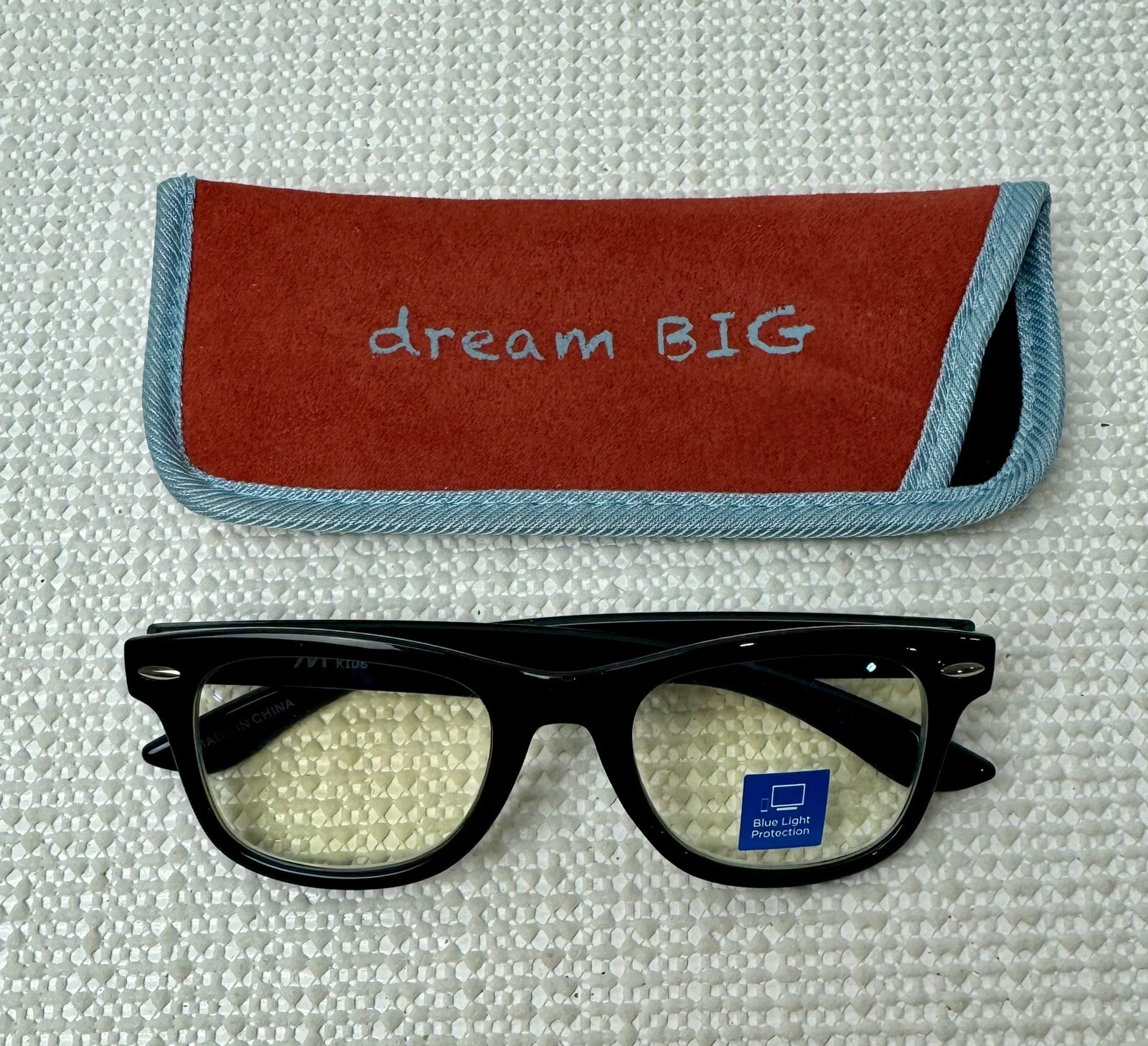 M+ Kids 2 Pair Blue Light Glasses w/Pouch Case Jay Black 45-18-125 Two pair of Kids Bluelight Glasses - bluelight protection reduces digital eye strain caused by extended screen time No magnification Scratch resistant UV protection Ultimate clarity