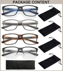 Description: Set of 4 Lightweight Plastic Rectangle Reading Glasses for Men with Flexible Spring Hinge. Provide the High Quality and Ex-factory Price Reading Glasses with Great Value and Friendly Customer Service. The Frame Style and Size Fits Most Face Shapes. Metal Spring Hinges Help Glasses Adapt to Face. Glasses Have a Stylish Look and Crystal Clear Vision. Package Includes Readers for Men X 4 Eyeglass Pouch X 4 Cleaning Cloth X 1 How to Care Never Wipe the Lens when They’re Dry. Please Use Neutral Detergent or Soap Water to Clean, Gently Wipe Dry with a Clean Soft Cloth. If You Have Any Problems with Our Items or Services, Please Feel Free to Contact Us,we Will Do Our Best to Solve Any Problems and Provide You with the Best Customer Services. Thank You So Much for Support Us! 【Anti Blue Light Glasses】:Anti Blue Light and Uv400 Lenses Can Filter Harmful Blue Ray & UV Glare.Effectively Block The Radiation Emitted from Computer Screen,Video Games,Phone & TV.Great for Office Workers or Anyone Who Has to Look at Screen All Day.Time to Say Goodbye to Visual Fatigue,Blurred Vision,Dry Eye & Headaches and Enjoy Better Sleep. 【Lightweight Stylish Design with Spring Hinge】:Stylish Two-tone Colors Design Men's Reading Glasses with Adjustable Spring Hinge Let The Temples Can Open Up to 25°Outwards, Suitable for Any Face Shape.One-piece Nose Pads,Suitable for All Kinds of Nose Type,You Can Barely Feel Its Presence,Comfortable to Wear for a Long Time.You Can Protect Your Eyes While Looking Stylish. 【4 Pack Great Value Readers】:a Set Comes with 4 Different Colors Blue Light Filter Reading Glasses,Suitable for Male,and Various Occasions.Leave One at Home,at Work,in Your Car's Glove Box,or in Your Purse,Backpack,or Carry All to Have Handy When and Where You Need Them. 【High-Quality Materials】: These High Quality Frames Are Made of Ultra-durable Materials for Durability and Comfort.the Metal Spring-hinged Temples Can Adapt to Different Face Shapes, Making the Glasses Comfortable to Wear for a Long.the Lenses Are Clearer Than the Normal Ones and Have Higher Precision As Well, Restore the True Color, Give You a Clear Vision and Bring the Best Reading Experience.So, These Reading Glasses Are the Wise Choice for You.