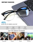 Blue Light Block Rate 45%: Low color distortion lens, provides the perfect balance between eye protection and viewing quality, significantly reduce harmful blue light emitted byelectronic screens. Suitable for various scenes such as work and andentertainment, such as watching TV, reading, working or using other electronic devices Reduce Eyestrain&More Better Sleep: Enjoy your digital time, No worry about eye fatigue, blurred sight and headache. You can enjoy a restful deeper sleep Comfortable to Wear: The frame is lightweight and flexible can provide comfortable wearing experience for you Classic Design: These half frame is classic and timeless. Casual frame design keeps you looks professional and fashionable while working or reading Reliable Brand and Gift Package: Our blue light glasses are gift packed, which will be a great gift for your family and friends! attaches great importance to product quality and customer satisfaction. Each customer can enjoy after-sale brand service for our blue screen glasses