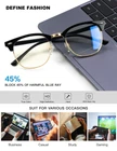 Blue Light Block Rate: 45%▶ Low color distortion lens, provides the perfect balance between eye protection and viewing quality, significantly reduce harmful blue light emitted byelectronic screens. Suitable for various scenes such as work and andentertainment, such as watching TV, reading, working or using other electronic devices. Reduce Eyestrain&More Better Sleep▶ Enjoy your digital time, No worry about eye fatigue, blurred sight and headache. You can enjoy a restful deeper sleep. Comfortable to Wear▶ The frame is lightweight and flexible can provide comfortable wearing experience for you. Classic Design ▶ These half frame is classic and timeless. Casual frame design keeps you looks professional and fashionable while working or reading. Reliable Brand & Gift Package ▶Our blue light glasses are gift packed, which will be a great gift for your family and friends! attaches great importance to product quality and customer satisfaction. Each customer can enjoy after-sale brand service for our blue screen glasses.