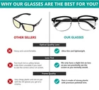 S UPPLY D IFFERENCE T O Y OU No fake order-records, No fake feedbacks. All sales and feedbacks are guaranteed real. All sources for our customers only. Focus on best products and services. Premium Blue Light Blocking Glasses Protect you from the daily exposure to the hazardous lights. Blue Light Blocking & Decoration Anti-blue is Neccesary ANTI-RADIATION & ANTI-GLARE Premium Blue Light Blocking Glasses Light has tremendous effects on sleep and health. Limiting screen time is one way to reduce and control light exposure. But for most of us, it's not going to get us consistently the protections we need from excessive blue light exposure. Our blue light blocking glasses can be highly effective at filtering out blue light and restoring healthy sleep and bio rhythms. Block Blue Light Reduce Digital Eye Strain Prevent Dry Eyes Minimize Glare Sleep Better Relieve from Headache Packing Include 1 of Premium Blue Light Blocking Glasses with Black Matte Frame 1 of Premium Blue Light Blocking Glasses with Leopard Frame 1 of Lens Cleaning Cloth Health Essentials Our acclaimed series of Health Essentials. Built using only high-grade materials and exclusive technology. From US to US The item(s) in this listing can be only shipped to US Territory. Item Details Premium Blue Light Blocking Glasses Description BLUE LIGHT FILTERED LENS - Glasses lens are designed using the American HEV-Adsorb substrate absorption technology.It can absorb high-energy blue light. Will effectively prevent all kinds of blue lights caused by digital devices, absolutely reducing the irritation caused by it. UV 400 & ANTI-HEV - The glasses protect your eyes from both UVA and UVB radiation. Prolonged exposure to high-energy visible (HEV) blue light can lead to eye strain and blurred vision. Studies have shown that it may also damage the retinal cells which can lead to an increased risk of developing age-related macular degeneration. Macular degeneration leads to vision loss over time. These lenses block blue light and provide maximum UV coverage to protect your eyes. ANTI-RADIATION & ANTI-GLARE - Contains anti-radiation materials which means it could absorb low-frequency microwave and eliminate the potential symptoms like fever, headache, fatigue and dryness. Adopt the advanced vacuum ion plating technology and can block the electromagnetic radiation, therefore have no side effects to eyes. RELIEVE EYE FATIGUE - If you are having blurred vision or headache after prolonged hours in front of digital screens, ( computer,laptops,smart phone), they are most likely experiencing digital eye strain. These glasses engineered to eliminate digital eye strain and block blue light. TRANSITION LENSES - The lens adjust its color automayically, which darkens in sunlight but is clear while indoors. The molecules absorb a certain wavelength of light and change shape in response respond to UV light. I Enhance your visual experience. PREMIIUM QUANLITY LENSES - Clearer, sharper, more pleasing image with less distortion. better image clarity, a more comfortable viewing experience and give you better vision when driving or playing sports, together with UV protection. SLIGHTLY TINTED - Unlike typical blue blocker lenses which have a very noticeable yellow or orange tint, Our lenses are one of the clearest blue-light-blocking lenses on the market, with only a slight tint. HIGH-QUALITY FRAME - Super lightness, abrasion resistance, with more stable metal hinge. It can effectively protect our eyes and faces from the scratches caused by the fracture and friction of the eyeglasses frame in the movement. ULTRA-THIN & LIGHTWEIGHT - Lightweight (weighing in at just 22.7 grams) for a comfortable fit. ENHANCE SLEEP QUALITY - Blocking harmful blue lights, minimize headache, improve sleep quality, anti eye-fatigue, Customers give them strong reviews, with many noting a significant improvement in the quality of their sleep after wearing. UNIVERSAL USAGE - Our lenses are blue-light blocking lenses that are designed for all-day wear and protection from blue light. Whether you're a heavy computer user or not, it can be worn like regular glasses to protect your eyes from harmful blue light emitted from any digital device, as well as artificial fluorescent and LED light exposure. VINTAGE DESIGN - A retro square shape and futuristic clear finish, this classic and chic frame is suitable for various occasions. Dimensions Lens Width: 53mm Bridge Width: 19mm Arm Length: 134mm Weight: 22.7g Frame Colors Black Matte Silver & Leopard (In one Package) Note: These are Non-Prescription Glasses Features Premium Blue Light Blocking Glasses Block Blue Light Glasses lens are designed using the American HEV-Adsorb substrate absorption technology.It can absorb high-energy blue light. Will effectively prevent all kinds of blue lights caused by digital devices, absolutely reducing the irritation caused by it. UV 400 & ANTI-HEV Prolonged exposure to high-energy visible (HEV) blue light can lead to eye strain and blurred vision. Studies have shown that it may also damage the retinal cells which can lead to an increased risk of developing age-related macular degeneration. Macular degeneration leads to vision loss over time. These lenses block blue light and provide maximum UV coverage to protect your eyes. TRANSITION LENSES The lens adjust its color automayically, which darkens in sunlight but is clear while indoors. The molecules absorb a certain wavelength of light and change shape in response respond to UV light. I Enhance your visual experience. ENHANCE SLEEPING QUALITY Blocking harmful blue lights, minimize headache, improve sleep quality, anti eye-fatigue, Customers give them strong reviews, with many noting a significant improvement in the quality of their sleep after wearing. Guarantees All items which distrubuted and sold by us Quality Guaranteed Our premium materials and advanced technology prevent you from any quality issues. 100% Functional Test before shipment. Laboratory reliabilit