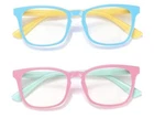 Blue Light Glasses for Kids Anti Eyestrain UV protection, Computer Gaming. 2 pack: Pink/green and yellow/blue Kids Blue Light Glasses : Kids glasses (non-prescription) for everyday life, while using computer, iPad or smart phone. kids blue light glasses can 100% filter harmful blue light, UV400 rays. prevent eyestrain, headache and protect eyesight. Blue Light Blocking Glasses : Soft TR90 Premium Product made from ultra soft light weight material which is super flexible as durable which doesn’t harm your kid’s skin. Silicone temple tip help for more grip n comfort. Computer Glasses : 2 Pack, multi pack give you freedom for different use. kindly check frame size before buying it. Blue Light Glasses Kids : Ages 3-8, latest premium classic design blue light computer glasses for kids are best for kids, teens, boys and girls (for more accuracy, please refer to the frame size), high transparency of frames, lovely game glasses for children.