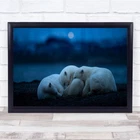 Blue Night Wildlife Nature polar bear cubs huddling sleep Wall Art Print