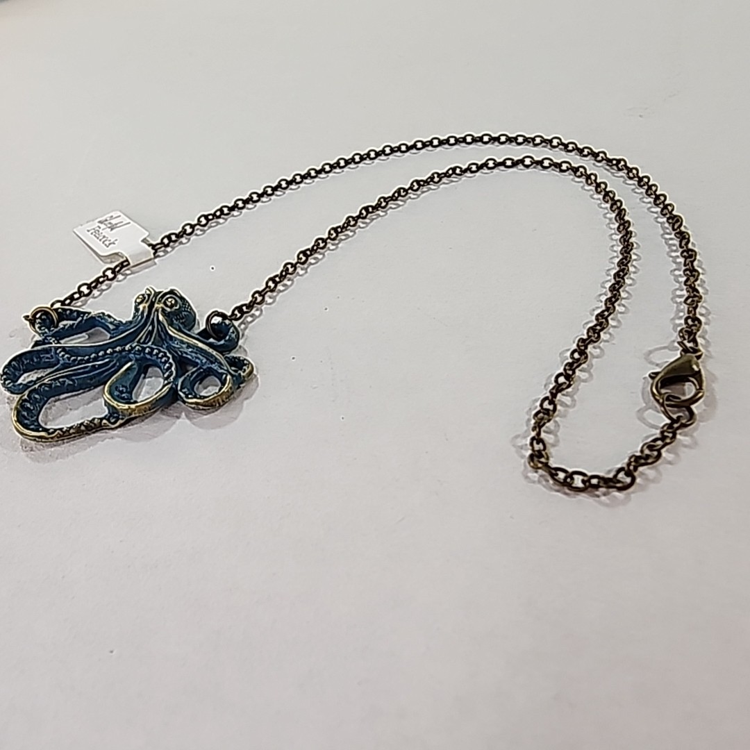 This is a really cool dark blue octopus 18" necklace - handmade in the U.S. This is a lightweight costume piece that is great for costuming, steampunk, nautical, etc aesthetics. Really fun necklace to wear as a statement!