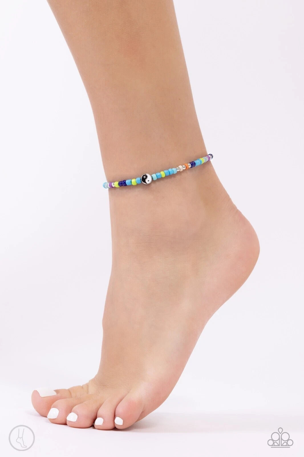 Infused with dainty silver accents, a collection of blue, pink, multicolor reflective beads are threaded along an invisible band around the ankle for a seasonal finish. Sold as one individual anklet.