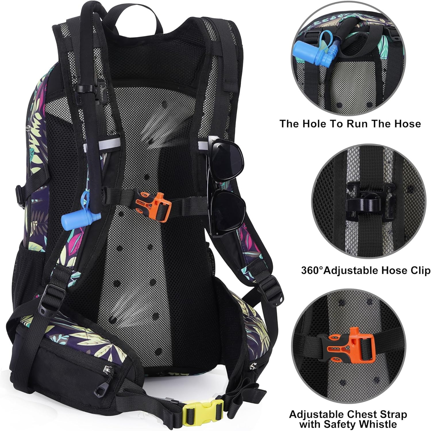 Hiking Backpack with 2L Water Bladder, Blue Print Product Details Product Dimensions: 11.4"W x 18.2"H Strap Type: Adjustable Capacity: 2 Liters Pocket Description: Utility Pocket Number Of Pockets: 3 Tank Volume: 2 Liters Manufacturer: SEMSTY Item Package Dimensions L x W x H: 10.59 x 9.57 x 4.84 inches Package Weight: 0.82 Kilograms Item Dimensions LxWxH: 11.4 x 11.4 x 18.2 inches Brand Name: SEMSTY Country of Origin: China Model Name: camel backpack hydration pack Suggested Users: unisex Number of Items: 1 Part Number: 9115 Included Components: 20l hydration backpack Brand: SEMSTY Color: Blue Print Material: Nylon Sport: Snowshoeing Item Weight: 1.4 Pounds Utmost Storage Capacity: Semsty hydration backpack size is L 11.4'' * W 5.5'' * H 18.2''. Overall capacity is 20 L hiking backpack, 2 L water bladder, a separate insulated pack. Main compartment to fit water bladder, clothes, notebook. Middle compartment for daily or hiking essentials. Built-in front mesh pocket for towel. Extra water bottle in the side mesh pockets for easy access. Helmet carry in the front helmet clip.Two convenient waist strap pockets for phone,keys or other small items Hands Free Drinking: This water backpack for hiking comes with 2 Liter hydration bladder & bilateral hose outlets designed to free your hands. High-flow bite valve; Large 5.9" (15cm) opening, easy to put in ice or wash and dry. The 2 Liter bladder is replaceable and supports up to 3 Liter Separate insulated compartment: Semsty hydration backpack pack with 2 l hydration bladder also come with a separate insulated bladder compartment for 6 Hours' Cooling(with ice packs) and prevents the water bladder from sweating out. Remove the water bladder and the insulated pack, it is a normal daypack, suitable for hiking, commuting, travel,cycling, skiing, etc. Do not hesitate to achieve a 20 l hiking backpack with water bladder for multiple uses Lightweight & Comfortable: Weighing just 1.4 LB (0.63kg), this hydration pack backpack is feather-light, streamlined. With Ultra-Elastic 3D breathable padded back & adjustable chest, waist straps , this lightweight small hiking backpack for women adjusts to fit all frames comfortably. Perfect fits all sizes If you have any problems, please reach out to us, we will reply within 24hrs. (We provide replacement services for quality problems within 1 year and lifetime customer service)