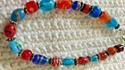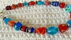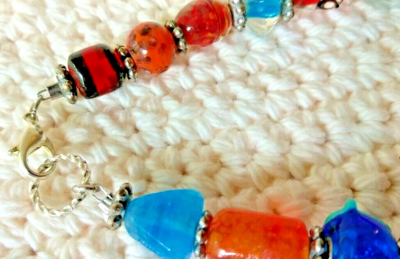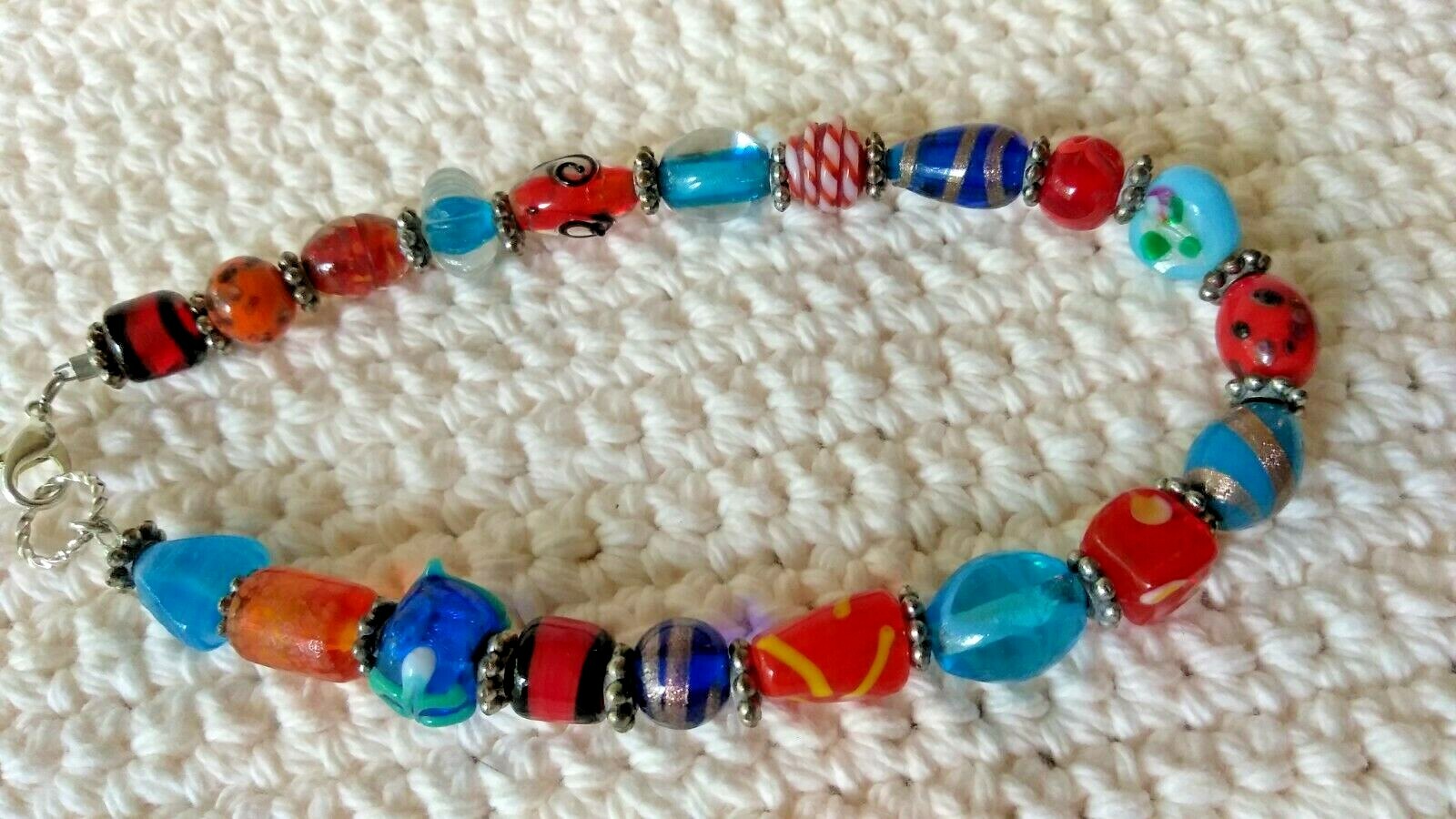 New hand crafted anklet. Blue and Red Color beads. Silver lobster claw closure. Measures about a little over 10 inches to the closure. Anklet is new and hand crafted by me. (A10)