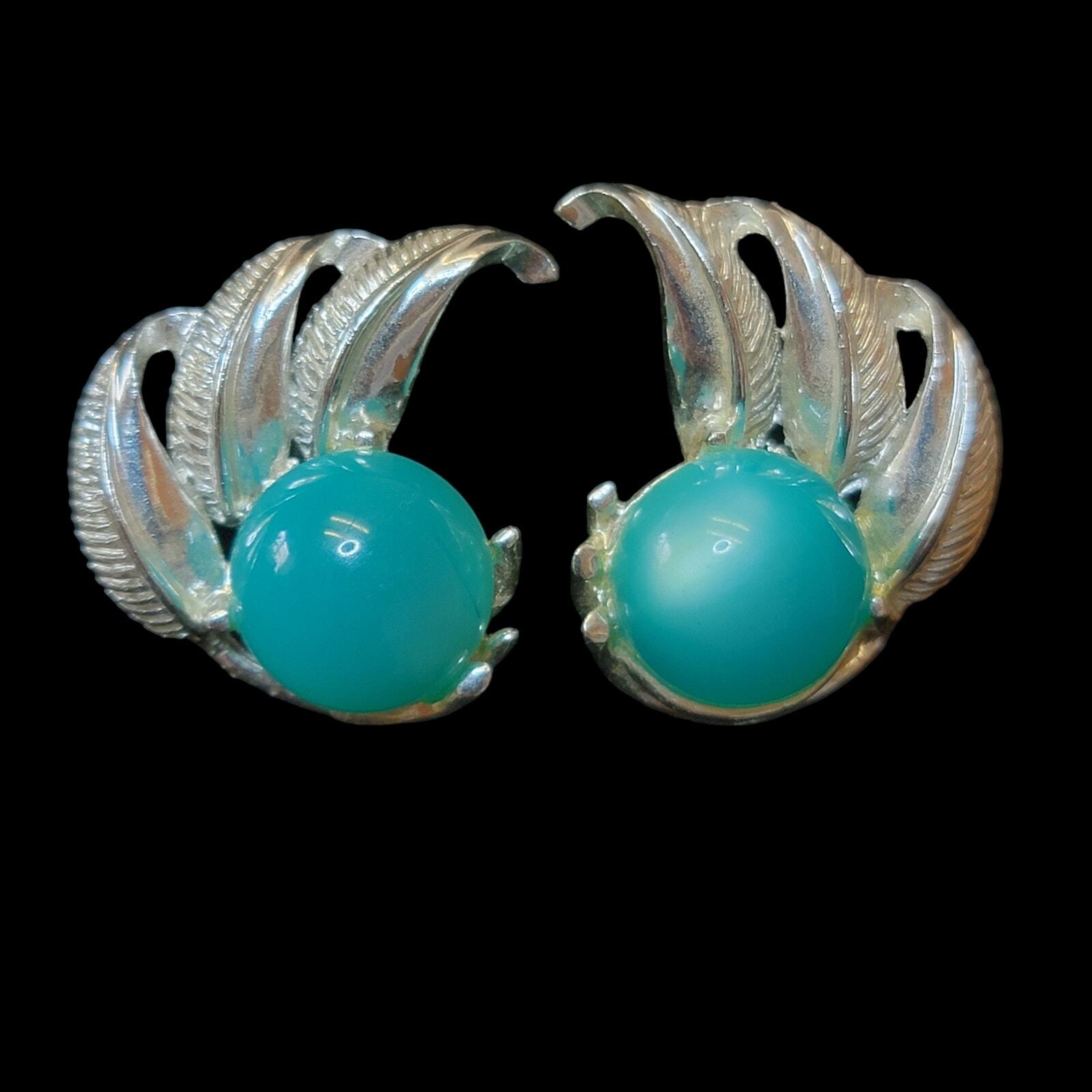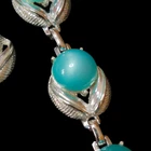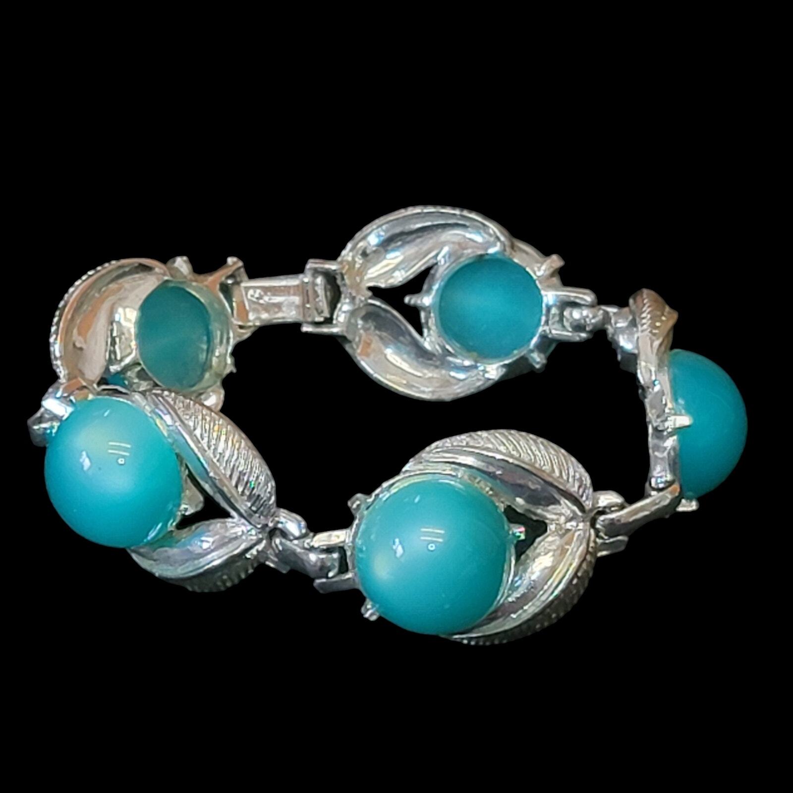 Vintage Art Deco Style Earring and Bracelet Set Brand: Vintage Includes: Clip on earrings, Bracelet Color: Turquoise blue, Silver-tone Material: Plastic Details: Very lightweight, Pearlescent Gently used condition with no flaws that I can see. **This is costume jewelry. It does not contain precious metals or stones.**
