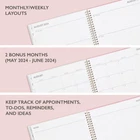 Blue Sky 2024-2025 Academic Year Weekly and Monthly Planner, 8.5" x 11", Frosted Flexible Cover, Wirebound, Roosevelt Pink (150150) Plan your year in style with the beautiful florals and rich colors of the 2024-2025 academic year Roosevelt Pink collection. This stylish weekly and monthly planner will keep you organized everywhere you go. Simple page designs add a touch of sophistication and offer plenty of room for all of your important information. Designed with practicality and ease of use in mind, this academic agenda's monthly calendar tabs allow for easy access to each month’s plans while weekly views offer ample writing space for detailing each day. High-quality white paper provides clean writing space for jotting down your appointments, to-dos and reminders. Use this dated academic planner to keep track of your appointments, and to write down notes and ideas in one place. Durable coated tabbed dividers are long lasting and make accessing information a breeze. Premium quality covers and twin-wire binding provide reliable durability for daily use. Stay on track throughout the academic year with this large 8.5” by 11” planner dated July 2024 - June 2025. Mix and match with other Roosevelt Pink Collection planning products from Blue Sky to organize your daily life. • Blue Sky creates modern and sophisticated organizational planners and calendars to fit the scheduling needs of busy people - whether it’s for business professionals, college students, teachers, or anyone with appointments to make note of. Keep your life organized with our full line of products including desk pad calendars, wirebound tabbed weekly and monthly planners with contacts and notes pages to accommodate your scheduling needs, and laminated two-sided wall calendars, all in a variety of colors and patterns to suit your lifestyle and personality. July 2024 - June 2025 floral planner with 12 months of monthly and weekly pages for easy academic planning and scheduling; 2 additional monthly pages (May 2024 - June 2024) are included Monthly view pages contain previous and next month reference calendars for long-term planning, and a notes section for important projects; Major holidays listed, elapsed and remaining days noted Weekly view pages offer ample lined writing space for more detailed planning, allowing you to keep track of your appointments, reminders, ideas and to-do lists every day of the week Yearly calendar layout includes a convenient list of holidays, reference pages, contacts pages and extra notes pages to accommodate your scheduling needs; Perfect for students and teachers Printed on high quality white paper for clean writing space, with premium quality covers in a beautiful floral pattern and durable, coated tabs that withstand constant use throughout the year Shipping from the USA All of our products are shipped from the USA, ensuring quick delivery to your destination. Payment We offer the following payment methods: PayPal, credit card, bank transfer, and eBay's secure payment system. Free Shipping & Free Returns Shipping within the USA is FREE. Additionally, any return is absolutely free for you. Risk-Free Purchase You have the option to return an item within 30 days without any justification. We cover the return shipping costs! Fast Shipping We ship immediately upon receipt of payment. Generally, the package is delivered within 2-3 days in the USA. If it takes longer, we will contact you. Quality and Costs Made in Europe, USA, China No customs fees or additional charges Total satisfaction guarantee Invoice with declared VAT available upon request in .pdf format Feedback Your feedback is very important to us. After you pay for your purchase, you will automatically receive positive feedback from us.