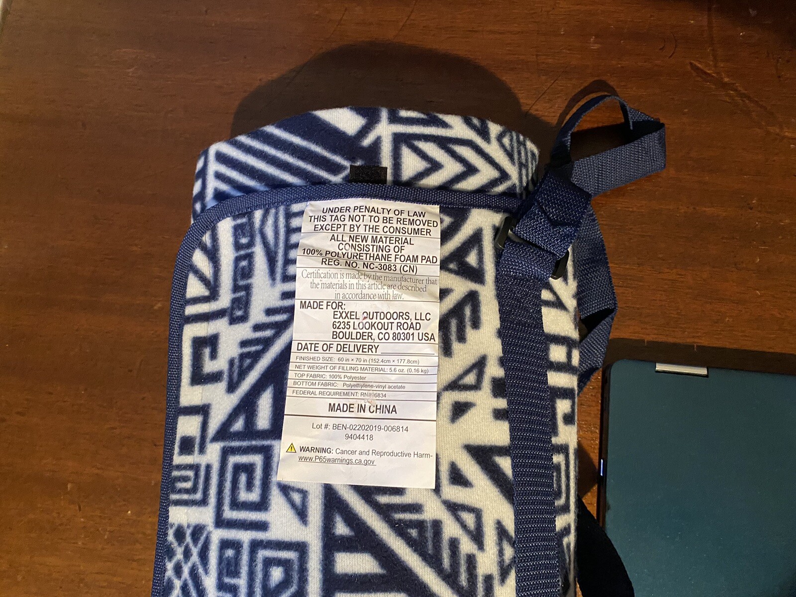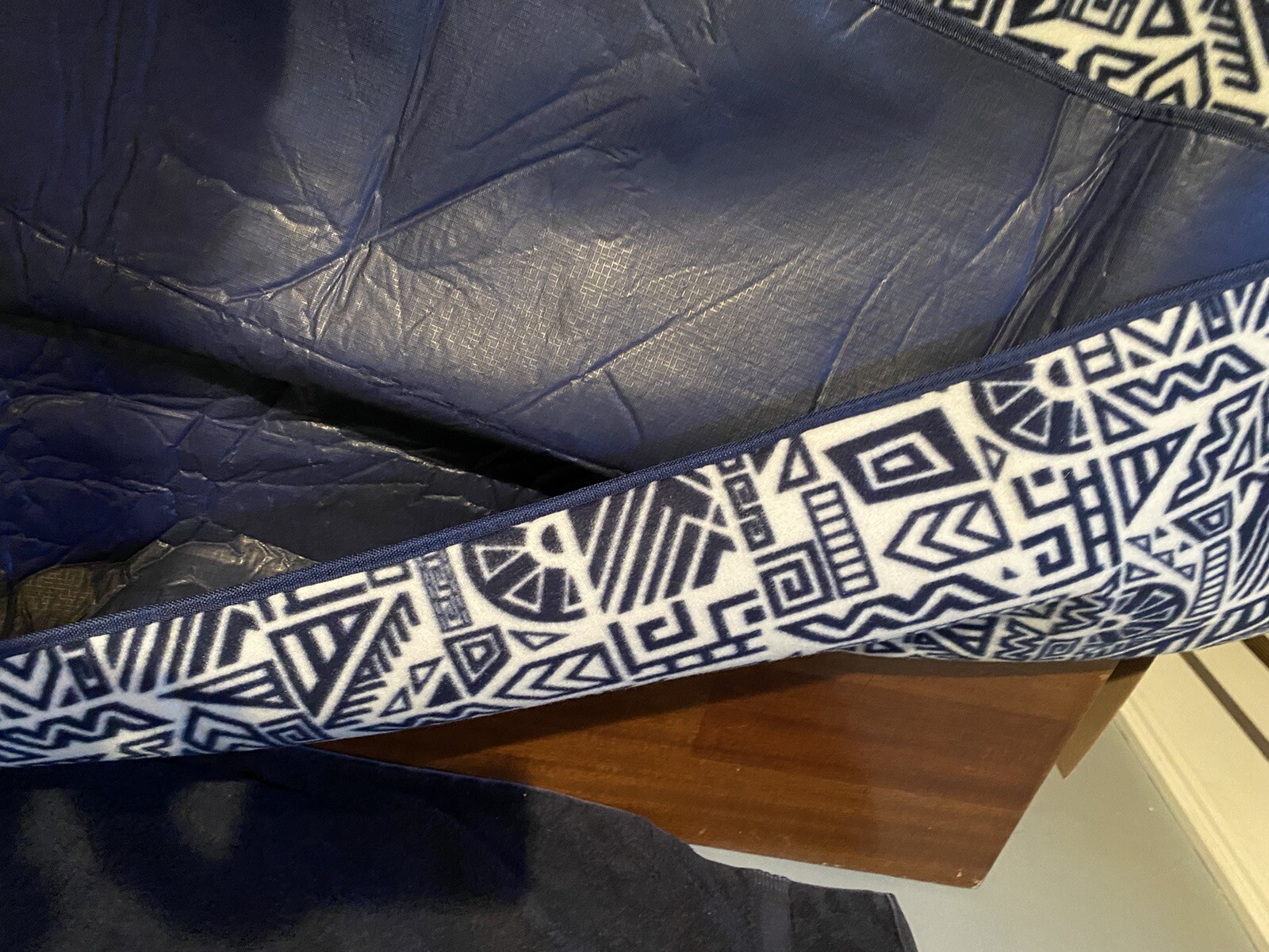 Roll Up Picnic Blanket Blue and White Print 60x70” Polyester Brand New. Waterproof backing. Great for beach too. Washable