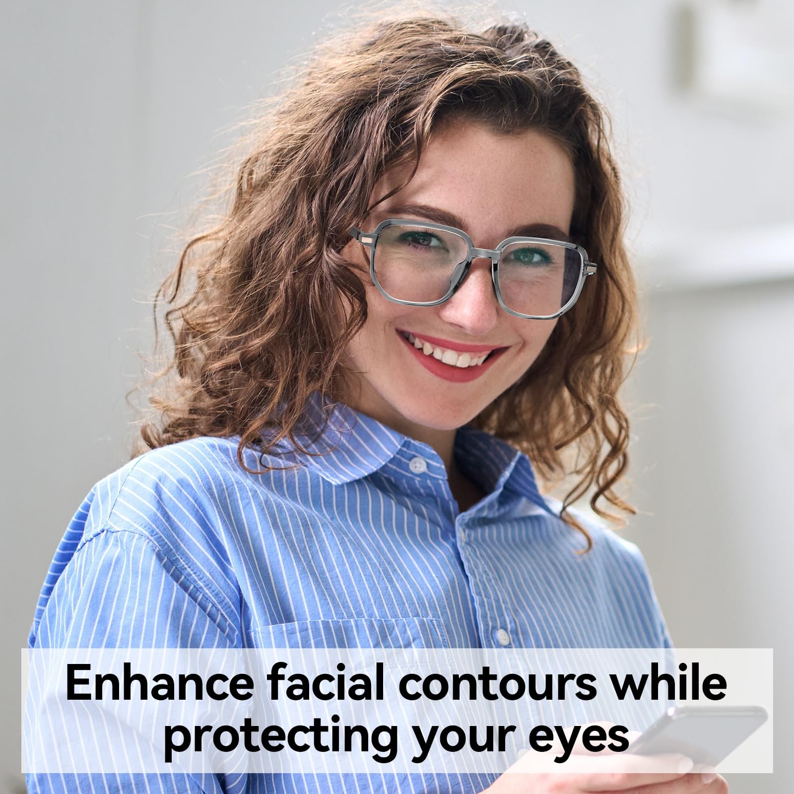 Our DG439 women's eyeglass frame is fashionable and versatile, suitable for both men and women. It is made of high-quality TR90 material, which has durability and flexibility, ensuring comfort even after long-term wear. The design of transparent lenses gives it a modern and fashionable appearance, allowing for the free choice of prescription lenses and blue light blocking lenses, making it easy to match with any clothing or personal style. Square frame is not only fashionable, but also suitable for various face shapes. Whether attending formal occasions or dressing up casually, it can add a touch of refinement and elegance to you. This pair of glasses can be used as both functional glasses and fashion accessories, making it the best choice for your collection. For men, it is a fashionable and modern choice while maintaining style. For women, it is the perfect combination of fashion and practicality. Whether you want to showcase fashion or just need a reliable eyeglass frame, our DG439 model is your best choice. With its high-quality structure and charming design, it is sure to meet and exceed your expectations. Premium Blue Light Blocking Technology: Our DG439 glasses are engineered with top-notch blue light blocking tech. They act as a robust shield against the harmful blue light emitted from computer screens, smartphones, and tablets. Ideal for women handling daily digital tasks and men immersed in long computer work or gaming sessions, reducing eye strain, dryness, and fatigue, safeguarding your precious vision. Oversize & Square Fashionable Frames: The women's oversize frames bring a trendy and statement look, flattering diverse face shapes while offering a wide field of vision. The men's square frames add a touch of modern elegance, designed to enhance any outfit. Crafted from durable TR90, these frames are lightweight, flexible, and comfortable for all-day wear, combining style with functionality. TR90 Durable Frame Material: Made of TR90, these glasses are built to last. TR90 is renowned for its excellent resistance to impact, deformation, and wear. It ensures the glasses can withstand daily bumps and drops without compromising on quality. The material also provides a smooth finish and is skin-friendly, making it suitable for those with sensitive skin, adding an extra layer of comfort. Versatile for All Genders & Digital Activities: Whether you're a woman scrolling through social media, working on a presentation, or a man engaged in intense computer gaming, online meetings, or binge-watching shows, these DG439 glasses are your perfect eyewear companion. They bridge the gap between fashion and eye protection, fitting seamlessly into various digital scenarios and lifestyles. GIFT IDEAS PACKAGE: Blue light blocking glasses *1, microfiber pouch*1, microfiber cleaning cloth*1, glasses leather box*1. It is also a gift packaged ready, making it a wonderful yet practical gift idea for friends and family!