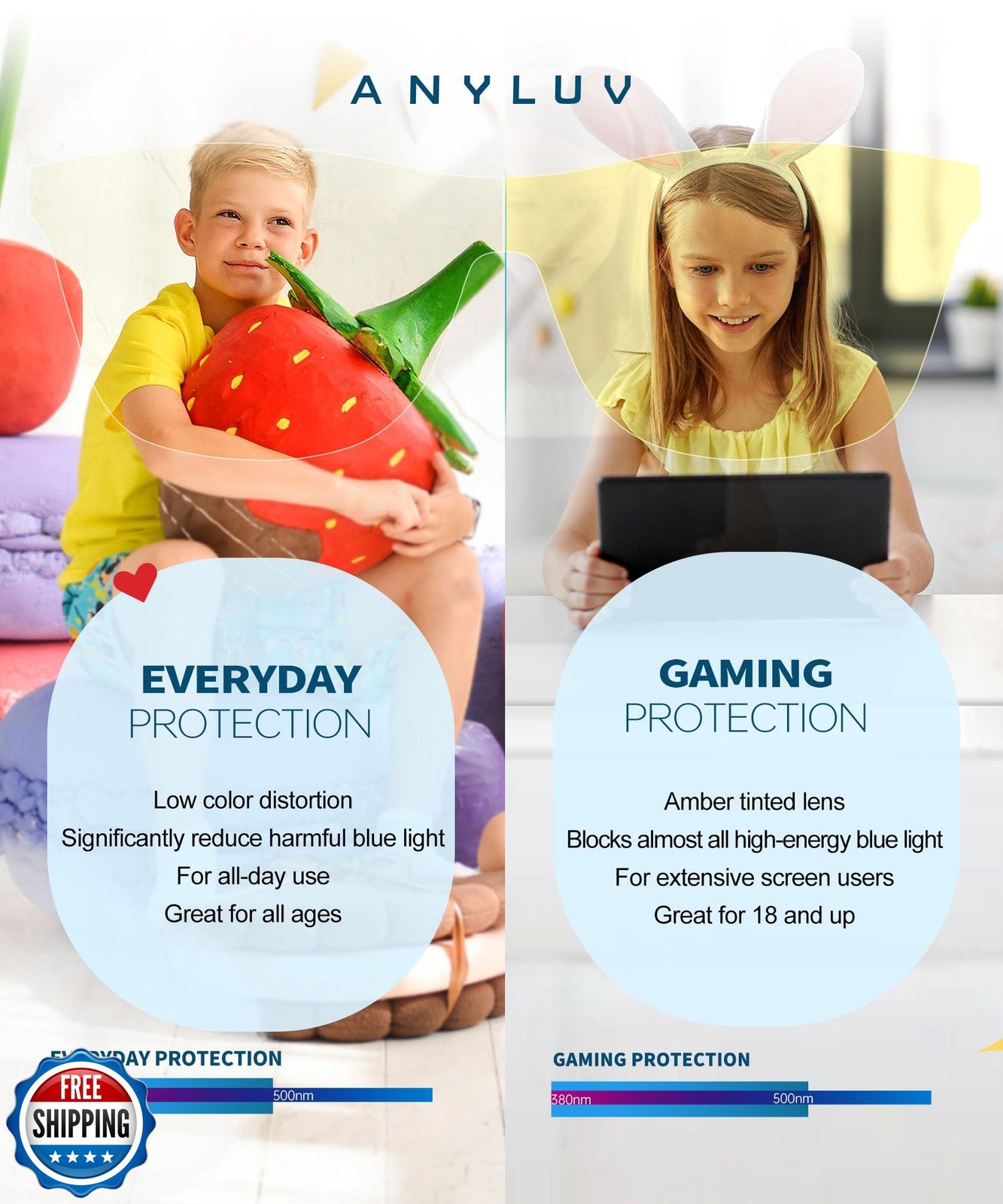 ANYLUV Blue Light Glasses for Kids, Youth Protection Glasses for Gaming, Teen Blue Light Glasses Reduce Eye Strain Features 【Ultimate Eye Protection】: ANYLUV blue light glasses for kids effectively filter harmful blue light from electronic devices, reducing eye strain and fatigue during screen time. 【Versatile for Outdoor Use】: These kid blue light glasses are not only perfect for screens but also provide UV protection for outdoor activities, ensuring your child's eyes are safe in any environment. 【Comfortable & Lightweight Design】: Made with soft, lightweight materials, our blue light blocking glasses are designed for all-day comfort, making them ideal for long hours of homework or fun activities. 【Fun & Trendy Styles】: ANYLUV offers a variety of stylish designs for kids, ensuring they love wearing their blue light glasses while looking cool during screen time or outdoor adventures. 【Durable & Kid-Friendly】: Built to withstand the active lifestyle of children, these blue light glasses for kids are made from high-quality materials, providing both durability and reliable eye protection. Shipping Free & Fast Shipping: We offer free shipping to most of the USA with a normal delivery time of 3-7 days. However, due to the current situation, additional delivery time (up to 3 weeks) may be required for some items. Alternative Carriers: We may use alternative carriers (e.g., USPS, FedEx, UPS) to ensure your package arrives safely and on time. Due to the use of multiple carriers, we are unable to provide a tracking number automatically. Handling Time: Orders are processed and shipped within 1-2 business days of receiving cleared payment. Shipping Restrictions: Shipping to Alaska, Hawaii, Puerto Rico, Guam, and other US territories may incur shipping charges or delivery restrictions. Please contact us before ordering, or your order can be refunded/cancelled. State Restrictions: Certain items may not be shipped to California due to state regulations. Contact for Tracking Updates: If you require tracking updates or have any concerns about the delivery of your order, please feel free to contact us, and we will be happy to assist you. Return Policy 30-Day Hassle-Free Returns: If you are not completely satisfied with your purchase, you can return the item for free within 30 days of receiving it for a full refund or exchange. Easy Return Process: Contact us, and we will provide you with a prepaid return shipping label and detailed instructions. No Restocking Fee: There are no restocking fees for returns. However, the buyer is responsible for return shipping costs if the return is not due to a seller"s error. Refund Processing: Refunds will be processed within 1 business day of receiving the returned item in its original condition. Feedback Your feedback is extremely important to us. We strive to provide the best products and customer service possible. If you are satisfied with your purchase, please take a moment to leave us a positive review. If you have any concerns or issues with your order, please contact us before leaving negative feedback. We are committed to resolving any problems and ensuring your satisfaction. Contact Us If you have any questions or concerns, please feel free to reach out to our customer support team. You can contact us through the eBay messaging system. We are available Monday to Friday, 9:00 am to 5:00 pm EST, and we will do our best to respond to your inquiry within 24 hours. Thank you for supporting our small family business!