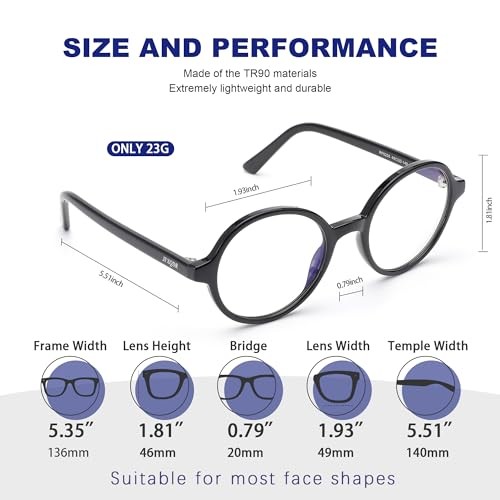 Return Policy Fast Delivery Trusted seller Round Blue Light Blocking Glasses Women Men, Circle Frame Computer Gaming Glasses Anti Glare & UV RF6206 (Black) Product Description HIGH QUALITY LENSES & UV400 PROTECTION - Clear lenses block more blue rays than others and see more realistic, they are resistant to scratches and water. INTERCHANGEABLE LENSES - The original lenses can be replaced with your prescription lenses at any optical glasses store. TR90 MATERIAL - The frame of TR90 material is not only unbreakable but also lightweight and flexible, making it comfortable and safe to wear for extended periods. REDUCE EYE STRAIN & SLEEP BETTER - Enjoy your digital time, NO worry about eye fatigue, blurred vision and headache, they are perfect for those who work long hours on their computer, tablet, gaming device, phone, or TV. PRODUCT SIZE - Lens Height: 46mm (1.81 inch) | Lens Width: 49mm (1.93 inch) | Nose Bridge: 20mm (0.79 inch) | Temple Length: 140mm (5.51 inch) | Frame Width: 136mm (5.35 inch) Shipping Returns Payment Shipping Shipping is FREE to all addresses other than APO/PO boxes in the lower 48 states. All our stock ships from US-based warehouses. Shipped via USPS or UPS (depending on location and package weight) Unless stated otherwise, all orders will ship within 24-72 hours of your payment being processed. Check our feedback to see the great reviews of FAST shipping we offer. Returns Seller does not accept returns Payment We currently accept payment via eBay managed payments only. Once payment is cleared, we will dispatch your shipment within 1-3 business days. Please refer to the "Shipping" tab for more information regarding shipping speed to your destination.
