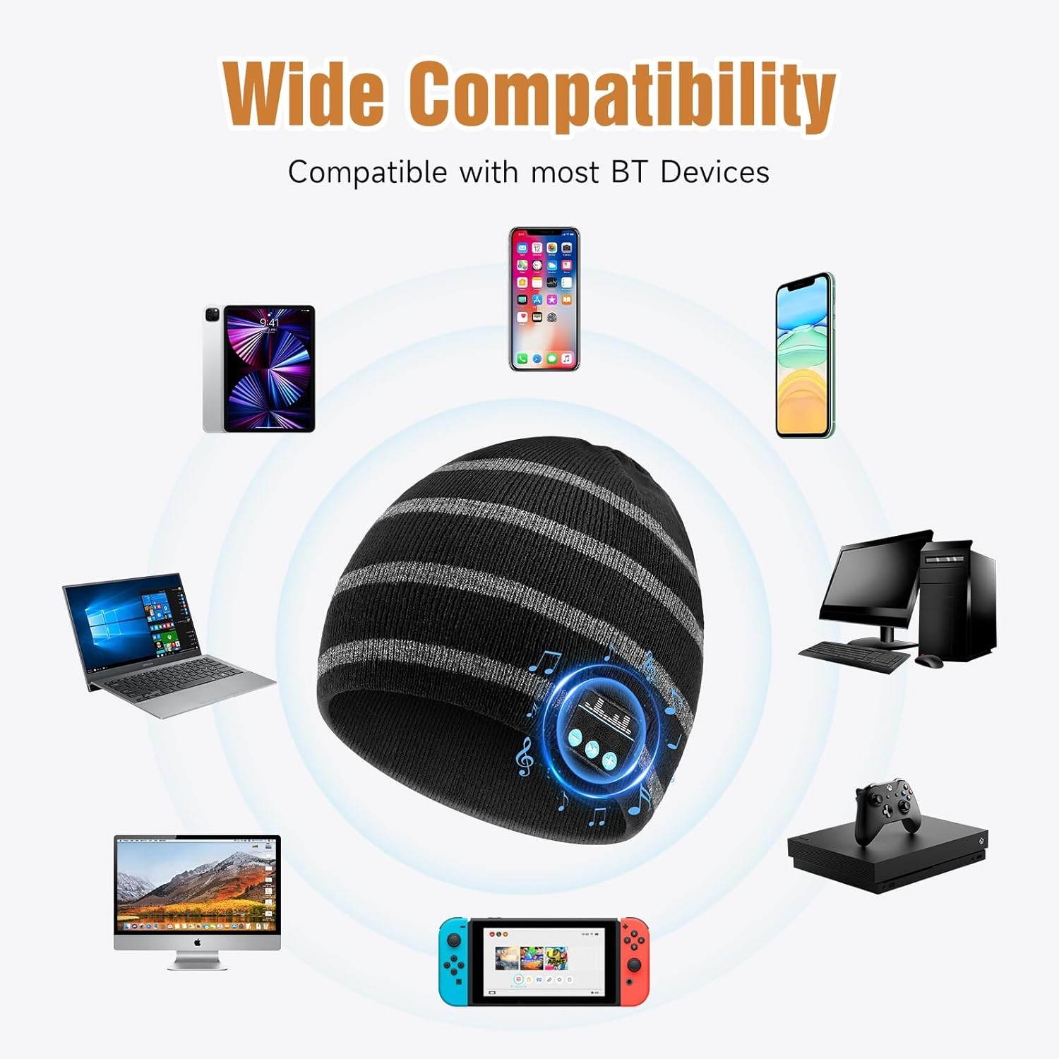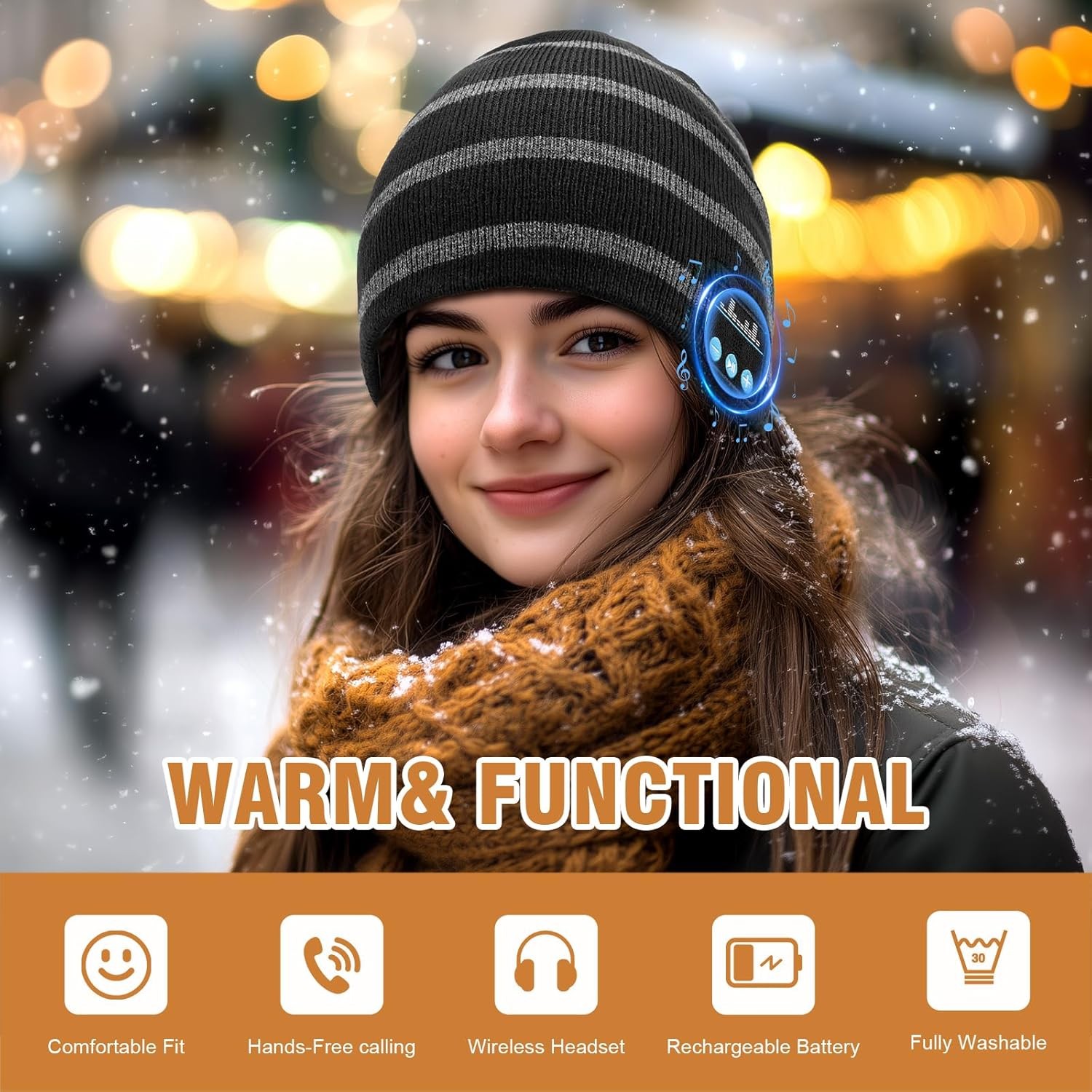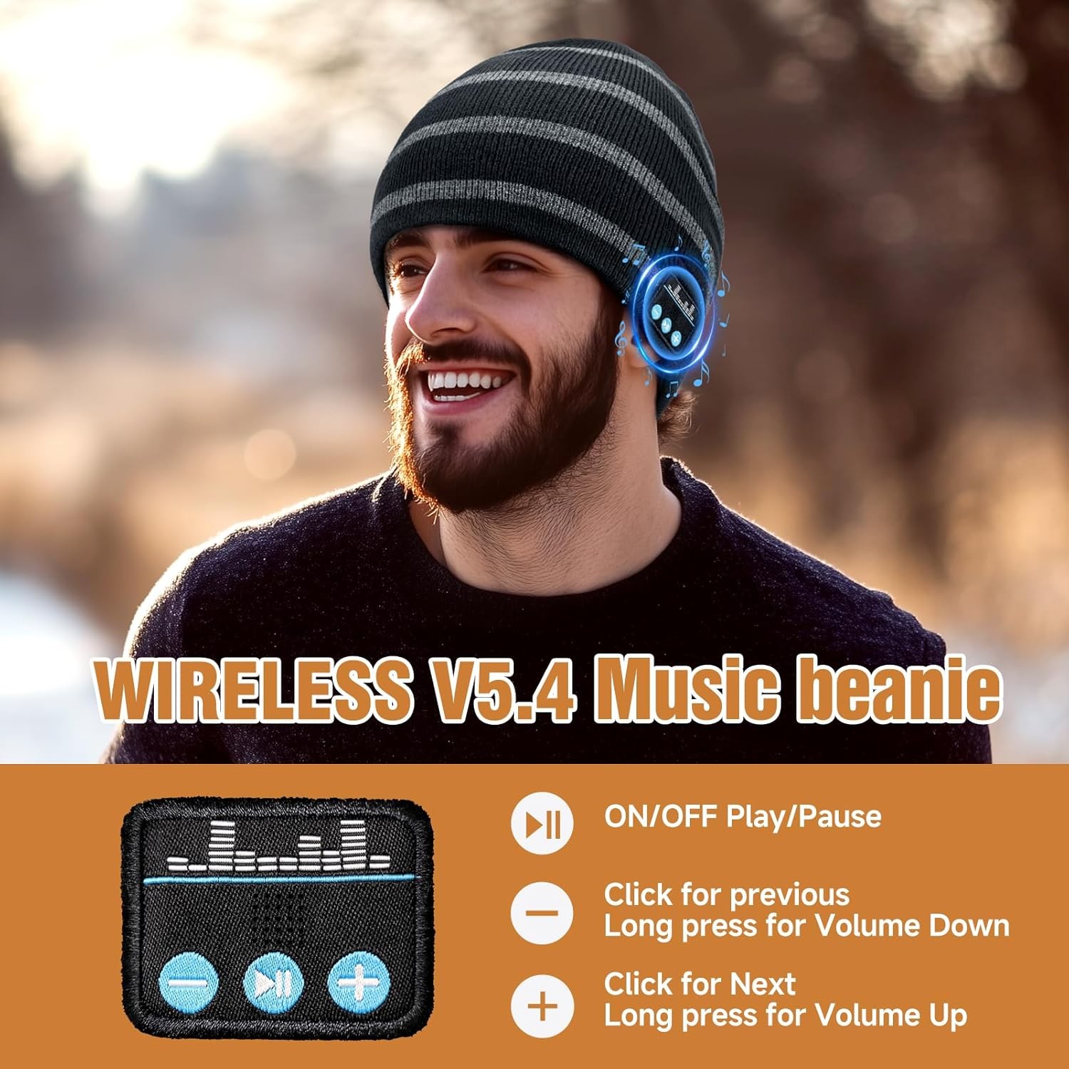 Free eBay listing template designed by dewiso.com Bluetooth Beanie for Men Women, HD Stereo Sound Beanie with Headphones, Christmas Tech Gift & Stocking Stuffer Idea FREE AND FAST SHIPPING! This bluetooth beanie, crafted from soft synthetic wool, is exceptionally cozy and skin-friendly. The beanie with bluetooth headphones features advanced thermal insulation that effectively traps body heat, offering reliable protection against the cold. This beanie with bluetooth headphones delivers crystal-clear, HD stereo Hi-Fi sound, allowing you to enjoy your music seamlessly anytime, anywhere—no more worrying about earbuds falling out. The integrated microphone also ensures convenient hands-free calling. Equipped with advanced Bluetooth 5.4 technology, our bluetooth beanie ensures an ultra-stable connection and features seamless auto-pairing with your last used device. Enjoy an extended 10-meter (33ft) wireless range and instant pairing with smartphones and tablets. The intuitive 3-button control allows you to effortlessly manage music, answer calls, and activate siri. A built-in rechargeable battery supports up to 10 hours of talk time or music playback on just a 1.5-2 hour charge (Type-C cable included), fuelling your longest adventures. It's the perfect, stylish Bluetooth beanie for camping, hiking, running, cycling, and all your winter activities. This bluetooth beanie for men women and teens is a thoughtful gift choice for birthdays, Thanksgiving, or as a stocking stuffer. It combines the classic warmth and style of a winter hat with innovative wireless technology, freeing you from tangled cords. For easy care, simply remove the Bluetooth module—the hat itself is fully machine washable. Product We offer a 30-Day Return Policy on items which you are not completely satisfied with. You have the option for a full-refund or an exchange of the item. No returns are available on items shipped outside of the US . Shipping We offer Free Shipping to the US and ship within 2 business days of payment, usually sooner. We use UPS express shipping. That's why your products are usually delivered within 3 days . Contact We try our very best to make sure every customer is completely satisfied. If there's a problem , message us! We're happy to help. 24/7 live chat available.