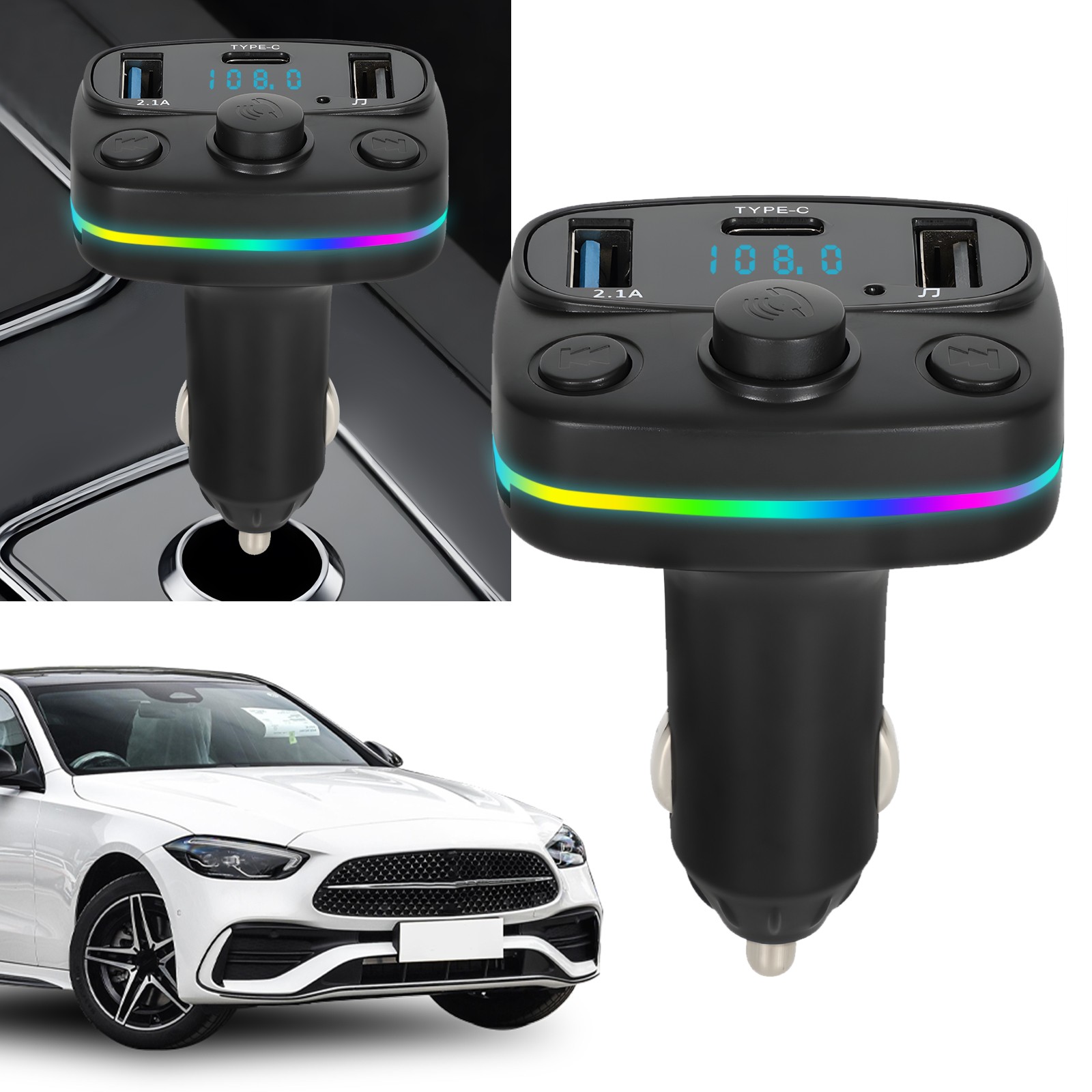 Product Features: High Performance Bluetooth FM Transmitter: Solid Bluetooth and FM connections stream music straight from your phone to your car’s sound system. Easy Pair: Easily pair your smartphone in seconds and stream music straight from your phone to your car's sound system. This will automatically connect to its memorized paired Bluetooth device when power on. Voltage Display: Voltage display feature ensures security reminder at a glance. Hands-Free Calls: Bluetooth 5.0 technology provides a stable connection and echo-cancellation reduces background noise for clearer calls. Built-in microphone with Echo Cancellation and Noise Suppression (CVC) technology can effectively create full duplex sound quality. Easily answering/redialing/dismissing or ending a call just simply click a but Guarantee ⭐⭐⭐⭐⭐100% Bran-new and Good Quality ⭐⭐⭐⭐⭐2025 New upgrade version ⭐⭐⭐⭐⭐Item Located United States ⭐⭐⭐⭐⭐ Fast shipping 2 to 5 working days ⭐⭐⭐⭐⭐ 60 Days Money Back + 90 days Warranty ⭐⭐⭐⭐⭐ CE,FC,RoHS,PSE Please be noted that we stock our products in US, and you will get your package in around 1-5 work days, while there are some other sellers who claim to be US stock too, but take more than a week (4-10 Days) to deliver, which are usually China stock in fact. Product Features: High Performance Bluetooth FM Transmitter: Solid Bluetooth and FM connections stream music straight from your phone to your car’s sound system. Easy Pair: Easily pair your smartphone in seconds and stream music straight from your phone to your car's sound system. This will automatically connect to its memorized paired Bluetooth device when power on. Voltage Display: Voltage display feature ensures security reminder at a glance. Hands-Free Calls: Bluetooth 5.0 technology provides a stable connection and echo-cancellation reduces background noise for clearer calls. Built-in microphone with Echo Cancellation and Noise Suppression (CVC) technology can effectively create full duplex sound quality. Easily answering/redialing/dismissing or ending a call just simply click a button. Dual USB Ports: Comes with 5V-2.1A and 5V-1A two charging ports, you can get your devices full charged in short time, support charging two devices simultaneously. Help you enjoy in-car stereo streaming and charge Your smart device at the same time. Safety: Ensure driving safe without disturbance. Compatibility: Fit for most of the smartphones, tablet and more devices that equipped with Bluetooth function, such as, iPhone, iPad, iPod, Tablet, Samsung, and other Android Smartphones. Specification: Interface: High-speed USB2.0 Material: ABS Screen: Orange LED screen Power supply: cigarette lighter power supply USB output: 3.1A Power supply: DC12-24V Support file type: MP3/WMA/WAV/FLAC Working current: 50-100mA DC12V Bit rate: 64-320kbps FM frequency range: 87.5-108MHz Signal to noise ratio: 85db (FM: 65db) Harmonic distortion: <0.05% FM: <0.1%) Working temperature: 0℃-60℃ Suitable models: DC12V -24V car universal Launch distance <5 meters Compatible Model: Universal For iPhone 15/14/13/12/12 Pro/12 Pro Max/12 Mini/11/11 Pro/11 Pro Max,For iPhone X/XS/XR/XS Max,For iPhone 6/6 Plus/6s/6s Plus, For iPhone 8/8 Plus/7/7 Plus For Samsung Galaxy Note 20/10/10+/10+ 5G,For Samsung Galaxy A10e/A20/A30/A50, For Samsung Galaxy S10/S10+/S10e, For Samsung Galaxy S9/S9 Plus, For Samsung Galaxy S8/S8 Plus, For Samsung Galaxy S7/Edge/Active, For Samsung Galaxy Note 8/9/10/10+/10+ 5G, For Samsung Galaxy J3/J7 Series For LG Stylo 4/5/5 Plus, For Motorola Moto Z3/Z4/Z4 Play, For Motorola Moto E5/E6 etc. For Alcatel For Google For HTC For One Plus For Nokia For BlackBerry For Other Devices Packing List: 1 x Car Bluetooth FM Transmitter Shipping Payment Return Customer Service Feedback Shipping We will ship the items within 24 hours on working days after your cleared payment. 1. Upon request, most of orders placed before 1pm EST can be shipped same day during weekdays from our US warehouse. 2. We only ship to the eBay confirmed address, Tracking number is uploaded to eBay orders. 3. Delivery time depends on destination and other factors, it may takes up to 3-8 working days. If you don't receive the item in 15 days, please contact us, we'll investigate and solve the delivery problem. 4. Import duties, taxes, and charges are not included in the item price or shipping cost. These charges are the buyer's responsibility. Please check with your country's customs office to determine what these additional costs will be prior to bidding or buying. Payment 1.We only accept PayPal. PayPal is the only online payment method we accept. 2.Payment must be made within 48hrs of the auction end time. 3.Non-Paying bidders will be reported. Return We provide 30 day return policy for products sold. If, for any reason, you are not satisfied with your purchases, full refund of the purchase (excluding the shipping expenses) can be applicable under the following circumstances: All accessories must be unused; ALL accessory packages must be unopened. All items must be intact and undamaged (except for defects in manufacturing). Items must be in good conditions with all original accessories, manuals, and packing materials. Any missing parts or damaged items will result in rejection on the return. In case of any defectives found, only defects in manufacturing are accepted as the reason of return. No refund is given if defects are caused by misuse of buyers. Our customer service officers will gladly contact you for further arrangement upon your request. All shipping cost thus generated is paid by the buyer. Item returned must be received within 7 days after the receipt of the items. No refund and replacement is issued after this period. Payment will be refunded as original currency only. We will not take responsibility for any loss due to exchange rate difference in the refund process. Refunds will NOT include ANY shipping and handling fees. A