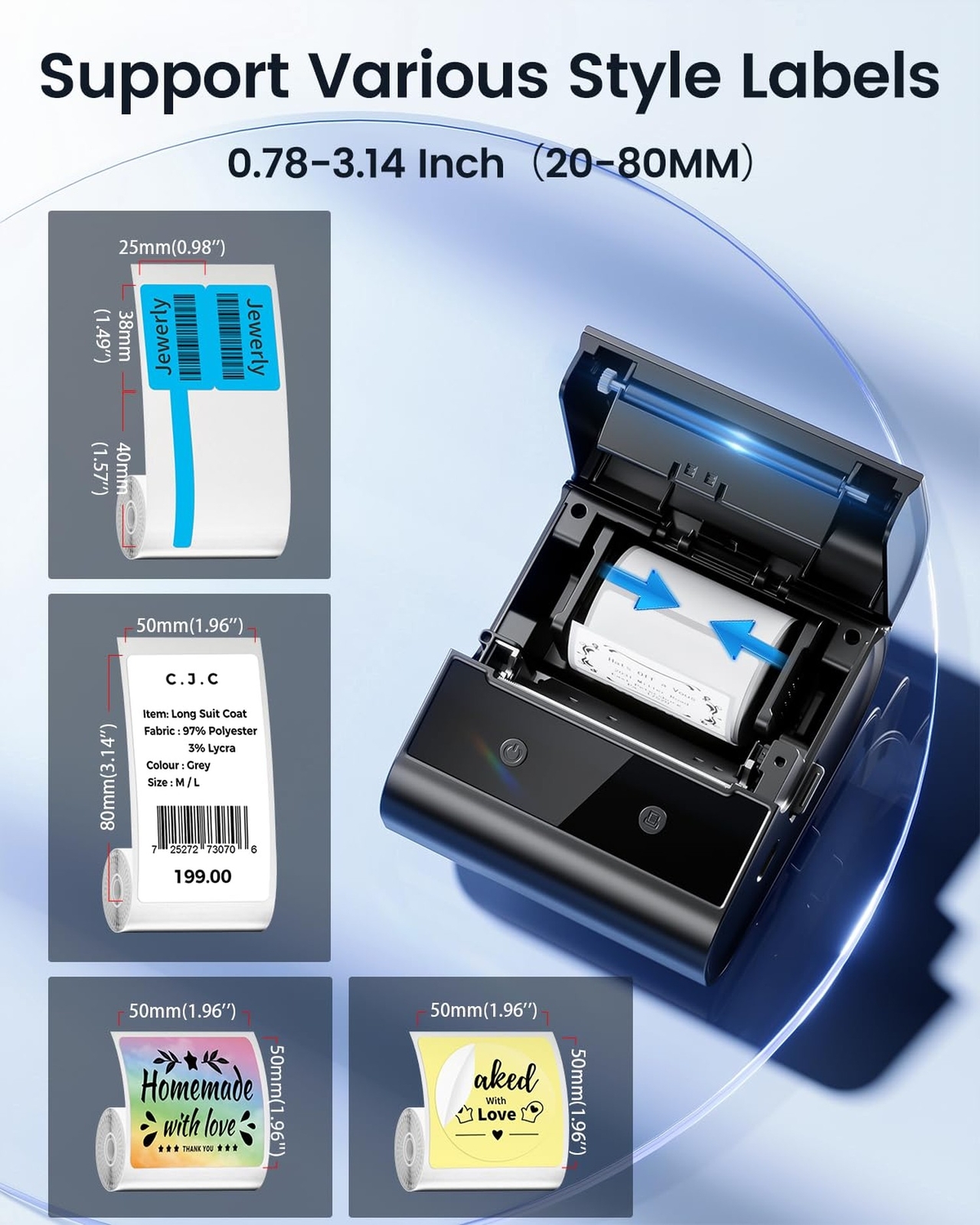 Label Maker, M260 Bluetooth Label Printer, Easy to Use 3 Inch Barcode Printer, Compatible with Phones & Laptop, for Home, Office, Business, Black Product Details Brand: Ponek Connectivity Technology: Bluetooth, USB Printing Technology: Thermal Special Feature: Portable, Bluetooth Color: Black Model Name: M260-BK Printer Output: Monochrome Max Printspeed Monochrome: 20 ppm Product Dimensions: 4.72"D x 2.64"W x 5.1"H Controller Type: iOS, Android Printer Media Size Maximum: 72 mm Included Components: Paper Print media: Labels Max Input Sheet Capacity: 50 Max Copy Speed (Black & White): 2E+1 ppm Compatible Devices: Smartphones, PC, Laptops Sheet Size: 72 Millimeters Dual-sided printing: No Duplex: Simplex Hardware Interface: Bluetooth, USB Ink Color: Black Additional Printer functions: Print Only Control Method: App Output sheet capacity: 50 Series Number: 260 Total USB Ports: 1 Model Series: M260 Specific Uses For Product: Label Printing, Receipt Printing Product Dimensions: 4.72 x 2.64 x 5.1 inches Item Weight: 1.23 pounds Item model number: M260 Batteries: 1 Lithium Polymer batteries required. (included) Date First Available: August 6, 2024 Manufacturer: Ponek Country of Origin: China 2025 Ponek's Flagship: Compared with other label maker, Ponek M260 thermal label maker has improved the issue of print content shifting or being omitted, and has been upgraded to fixed center symmetric paper output, which can secure labels of various sizes. The Ponek M260 label printer comes with 100pcs of 1.57" x 1.18" label paper rolls Various Sizes of Labels: This address label maker supports printing labels with widths from 0.78 inches to 3 inches, making it suitable for small and large labels, barcodes, QR codes, addresses, names, clothing tags, mail, canning labels, food labels, etc. M260 barcode printer is ideal for home, stores, schools, and small businesses. (Note: bluetooth label maker cannot print 4 x 6-inch shipping labels) Multifunctional App: This address label printer is compatible with the Print Master App. The app includes a variety of features such as text, images, barcodes, QR codes, OCR, forms, thousands of icons, and numerous pre-made templates for both business and home use. The Ponek barcode label printer improves your efficiency in work and life Compatible with Multiple Devices: This Bluetooth label maker machine is compatible with most mobile phones and computer devices. When using a smartphone, you need to connect to the app via Bluetooth and is compatible with both iOS and Android systems. When using a computer, you need to connect with a USB cable and download the driver from the specified website to use it with Windows, Linux, Windows-ARM, Mac, and Chrome OS Portable Label Maker: The Ponek M260 thermal label printer measures 4.72 x 5.1 x 2.64 inches and weighs 413 grams. Equipped with a built-in 2200 mAh rechargeable battery, this compact logo printer is convenient for carrying on business trips and allows for printing anytime, anywhere