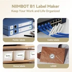 EASY TO USE :B1 Bluetooth label printer supports iOS & Android and PC. The app included more than support 30+ fonts/Languages, 100+ borders, and 1500+ symbols. Just need to download the free app, choosing and connecting printer model B1 from NIIMBOT APP, Then Enjoy Printing. PORTABLE & SMALLER:B1 Portable label maker comes with 1500 mAh lithium battery for Convenient & Fast printing. 5 hours lasts working after one charge, So don't need to buy batteries.The label printer will shutdown auto when paused for 15 minutes to save power. B1 PORTABLE LABEL MAKER:It is made of ABS, with fashion look which can be widely used in supermarket, stores,clothing, jewellery, small business owners, office & home organization. It's ideal for Valentines day, Halloween, Thanksgiving day, Christmas and holiday present to your family and friends.
