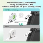 2024 New Version: Compared with the traditional label makers, half weight and size of the traditional label maker, smaller, smarter and convenient for users to carry. Wireless bluetooth label maker can slip into your pocket, allow printing anytime, anywhere. We recommend using our NELKO thermal label paper for good printing quality. Attention: For P21 Nelko APP iOS Users, Nelko iOS V2.7.0 printing multiple copies abnormal, please update Nelko APP to the latest version V2.7.1 High-quality Printing: Label Makers with BPA-Free Direct Thermal Technology. Equipped with high-speed chips and 203 DPI, you can enjoy high-definition without relying on ink or toner. Label maker built in durable rechargeable battery, it can work for a long time. This label maker is monochrome printout, which only prints black text. We can create color label and need to use color pattern label tapes for printing.(Note: Not including charging adapter, not suitable for fast charging adapter) Easy to Use: NELKO label printer compatible with IOS & Android Phone via bluetooth connection. Step 1: Download "Nelko" APP from Google Play or App Store. Step 2: Install the paper roll. Step 3: Connect the P21 bluetooth within APP. Step 4: Choose a quick template and start printing. It is not compatible with Google phones on Android 14. This label maker machine with tape APP included more than 90 +Fonts, 10+ Languages, 450+ Materials. (Note: This label maker doesn't work with computers) Multiple Creative Function&Templates: This app of the label maker provides various features and templates, easy to create various design label stickers from App with Text, QR code, Barcode, Materials, Images, Time and Borders, etc. The length of labels is fixed, including 12X40mm, 14X40mm, 14x50mm, 14x75mm, and more. Please do not tear or destruct the green sticker on the back of the label strip , otherwise it will affect the printing effect. (Note: Continuous label tapes are not supported) Design Your Own Labels: The label maker machine with tape is widely used in life and office. For Home, organizing your clothes, food storage, cosmetics items, and mailings. For Office, office organization includes notebook tags, price tags, reminder tags, and other office supplies. For School, label maker for classroom teacher and kids school items, personal item identification, name tags. Labeler makers bring you fun and convenience Product Description NELKO P21 Label Maker The video showcases the product in use. The video guides you through product setup. The video compares multiple products. The video shows the product being unpacked. 1 Multiple Label Styles 2 Various Size 3 Customize 4 Multiple Resources 5 AI Gallery The video showcases the product in use. The video guides you through product setup. The video compares multiple products. The video shows the product being unpacked. 1 Bluetooth Connection 2 Connect Label Printer 3 Install Label Tape 4 Genuine Label 5 Indicator Light 2024 New Version NELKO P21 Mini Portable Bluetooth Label Makers Warm Tips: 1. Download the App "Nelko" from the Apple Store/Google Play, and meets with applicable data compliance laws. 2. Connect the Bluetooth via the "Nelko" App , not on the phone system. 3. Before printing, please select the appropriate size for the printing paper on the "Nelko" App. How to connect Bluetooth? 1. Connecting to Bluetooth through the "Nelko" APP. 2. Download the App "Nelko" from the Apple Store/Google Play. 3. Turn on Bluetooth on your phone, long press to turn on the P21 labelmaker machine, and open the "Nelko" app to link to Bluetooth. What system does this label machine support? This mini portable Bluetooth printer supports iOS and Android mobile systems. IOS phones require IOS 11 or above to be used. Why is the printing unclear? Please use genuine label paper, otherwise it may result in poor printing quality or mismatches. Note: Please do not tear the green sticker from the original label paper. And the size of the label tape can be 12x40mm, 14x40mm, 15x40mm or 14X75mm. How to use the label makers best sellers with tape correctly? 1. Long press the power on button, indicator light will display green. 2. Successfully connected to Bluetooth, indicator light displayed in blue. 3. Press the button twice to adjust the paper position. 4. Press the button once to print the test page. Why can I search for P21 label maker but not connect to Bluetooth? 1. Press the power button to start the label maker. 2. Open the paper bin cover of the label maker. 3. Press the power button 3 times in a row. 4. After about 2s, the label maker beeps 4 times, "Didi Didi", which means the reset is successful. Work with NELKO P21 Labal Maker Machine Add to Cart Add to Cart Add to Cart Add to Cart Add to Cart Add to Cart Add to Cart Customer Reviews 4.6 out of 5 stars 2,265 4.6 out of 5 stars 2,265 4.7 out of 5 stars 365 4.7 out of 5 stars 46 4.4 out of 5 stars 127 4.7 out of 5 stars 81 4.7 out of 5 stars 81 Price $9.99 $ 9 . 99 $9.99 $ 9 . 99 $15.99 $ 15 . 99 $15.99 $ 15 . 99 $9.99 $ 9 . 99 $15.99 $ 15 . 99 $15.99 $ 15 . 99 Pack 180 Labels 180 Labels 540 Labels 540 Labels 180 Labels 540 Labels 540 Labels Color White Transparent Yellow/Blue/Pink Purple/Rose/Pink White — — SIze 15x40mm 15x40mm 12x40mm 14x40mm 14x50mm 14x40mm 14x40mm Advantage Clear Printing, Waterproof Clear Printing, Waterproof Clear Printing, Waterproof Clear Printing, Waterproof Clear Printing, Waterproof Clear Printing, Waterproof Clear Printing, Waterproof Support NELKO P21 Label Maker NELKO P21 Label Maker NELKO P21 Label Maker NELKO P21 Label Maker NELKO P21 Label Maker NELKO P21 Label Maker NELKO P21 Label Maker High Quality ✓ ✓ ✓ ✓ ✓ ✓ ✓