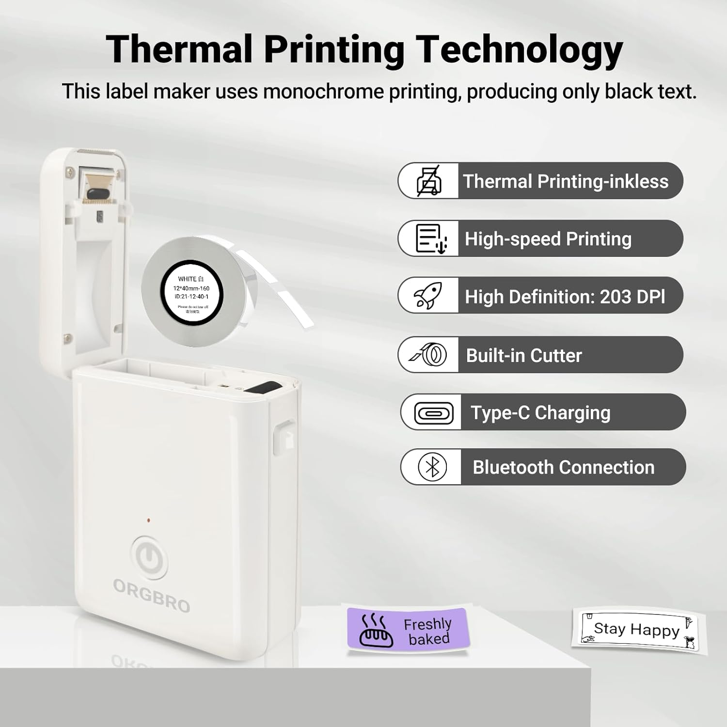 Wide Range of Applications: ORGBRO X1 label maker is suitable for home organization (spices, food containers, date labeling, storage boxes, tool storage...); school and office supplies (name tags, file classification, stationery...); equipment identification or item labeling (switches, controllers, cables, cups, etc.) Easy to Use: This label maker machine with tape APP connects and sets up the device in under a minute without any payment or registration required; Creates labels quickly and easily; Half the weight and size of traditional label maker, ORGBRO label printer are portable and can be operated with one hand Feature-Rich and Template-Diverse: XeasyLabel APP offers over 15 languages, 95 fonts, and 550 materials, all free to use, for easy label customization; ORGBRO label maker can print various text, numbers, graphics, symbols, logos, barcodes, QR codes, etc Save Time and Money: X1 thermal label maker uses thermal technology to deliver high-quality prints without the need for ink or toner; The label maker machine with tape built-in 2000mAh rechargeable battery provides longer operating times than other brands, saving you time and money (Note: please fully charge before first use) Label Durability: ORGBRO label maker comes with a roll of 12 x 40 mm white pre-cut labels; ORGBRO labels waterproof, oil-resistant, and abrasion-resistant. No residue remains after removal; Supports continuous label paper (14 mm width) and fixed-length labels (12 x 40 mm); We recommend using ORGBRO thermal label paper for optimal print quality Product Description ORGBRO X1 Label Maker Tape Add to Cart Add to Cart Add to Cart Add to Cart Customer Reviews 4.7 out of 5 stars 267 4.7 out of 5 stars 267 4.7 out of 5 stars 267 4.7 out of 5 stars 267 4.7 out of 5 stars 267 4.7 out of 5 stars 267 Price $12.99 $ 12 . 99 $14.99 $ 14 . 99 $14.99 $ 14 . 99 $14.99 $ 14 . 99 $12.99 $ 12 . 99 — Pack 160 Tapes/Roll, 3 Roll 7 m/Roll, 3 Roll 7 m/Roll, 3 Roll 160 Tapes/Roll, 3 Roll 160 Tapes/Roll, 3 Roll 160 Tapes/Roll, 3 Roll Color Green/Purple/Blue White Green/Purple/Orange White Joyful Patterns Gradient Size 0.47 × 1.57 inches 0.59 × 275.6 inches 0.59 × 275.6 inches 0.47 × 1.57 inches 0.47 × 1.57 inches 0.47 × 1.57 inches Style Pre-Cut Continuous Label Continuous Label Pre-Cut Pre-Cut Pre-Cut Compatible with ORGBRO X1 Lable Maker ORGBRO X1 Lable Maker ORGBRO X1 Lable Maker ORGBRO X1 Lable Maker ORGBRO X1 Lable Maker ORGBRO X1 Lable Maker ORGBRO X1 Label Maker