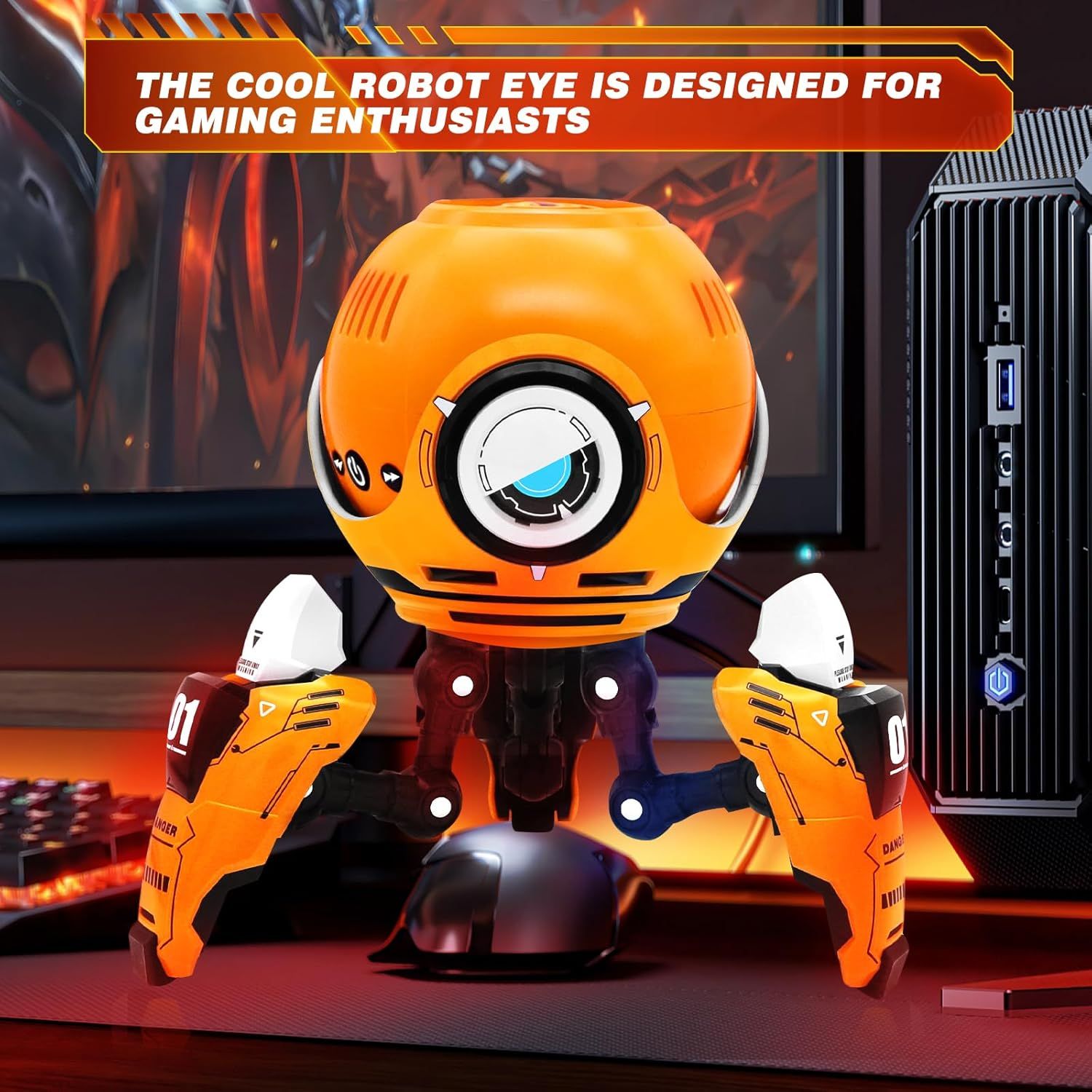 [360° Hi-Fi Stereo Sound and Rich Bass] This portable wireless Bluetooth speaker provides crystal like surround sound, with a total output power of 24W and ultra strong bass, allowing you to immerse yourself in the world of music. Advanced sound quality processors ensure ultra strong bass effects and zero distortion. [Cool Styling & Dynamic RGB Lights] Robot Eye has a super cool design and dynamic RGB lighting, designed specifically for gaming enthusiasts. If paired with our exclusive speaker stand, it will give your desktop a more mechanical atmosphere. [Ultra Long Distance Bluetooth Connection] Wireless Bluetooth speakers can connect to devices smoothly and without interference, even under difficult conditions, up to 66 feet away. The Bluetooth 5.3 chip can easily read music playlists and connect to any device such as smartphones, televisions, and laptops. This is a Bluetooth wireless speaker suitable for travel, gatherings, and home use. [Multi Function Button] One click mute button operation, and multifunctional previous and next tracks. Click the button to freely switch between the previous and next tracks, and long press to achieve sound addition and subtraction. Make your operations within reach. [Ideal Gifts] : Bluetooth Speakers with stylish design and advanced features. The gift for any occasion! Creative for Valentine's, Easter, Mother's, Father's, or Christmas Day. Product Description