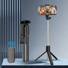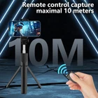 Features: 【3-in-1 Selfie Stick and 4-leg Tripod】The selfie stick quadpod can extend from 7.24 to 26.77 inches, which makes it perfect for photography, face-to-face, business, live broadcast. It features a fully expandable handheld selfie stick handle and built-in foldable legs. You can easily switch between selfie stick mode and phone tripod mode according to your preference. 【With Remote Shutter】: Wireless connection range up to 10 meters. It is perfectly compatible with most smartphones on the market, iOS/Android compatible. Applicable to Apple phones with iOS 5.1 and above, and Android phones with Android system 4.3 and above. 【Lightweight and Portable】: Professional and lightweight selfie stick tripod with remote control is made ABS material, weighing only 140g. Only 18.4cm long, lightweight and compact, easy to carry 【Adjustable Angle & Rotating Phone Holder】: 360° rotatable phone holder and 180° rotating head allow you to take photos, video calls or live broadcast. Specifications: Material: ABS+Stainless Steel Suitable for: Mobile phones, GpPro cameras Equipment weight: about 140g Product size: about 184mm*46mm*36mm Bluetooth version: Bluetooth 4.0 Bluetooth transmission distance: 10M Support phone size: 4.7-6.0 inches How to use: 1. Press and hold the remote control button to turn on the remote control blue light flashes. 2. Turn on the phone Bluetooth, search for the new device , and then connect. 3. After the pairing and connection is completed, open the mobile phone camera software. 4. Set the pose Press the remote control shutter to control the photo. Package Included: 1*Selfie Stick 1*Bluetooth Remote Control