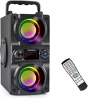 ♫[2.2-channel portable wireless speaker ●Dual bass and tweeter] A30 Bluetooth speaker is a portable Bluetooth speaker. The 2.2-channel wireless Bluetooth speaker has 4 speakers, including two bass, two tweeters and a rear heavy bass tube. The Bluetooth speaker has 40W high power, rich bass, clearer and more realistic high-fidelity sound quality, so you can better appreciate the sound. Portable speakers are suitable for indoor and outdoor travel, parties, swimming pools, beaches or camping. ♫【Multi-functional Party Speaker●Cool rainbow lights】A30 portable party speaker supports FM radio, TF card, AUX input, 3.5MM microphone jack, U disk music playback, smart remote control and digital display. The Bluetooth party speaker is equipped with flashing LED colorful lights, and the flashing strobe makes the music more dynamic. Suitable for families, backyards, small gatherings, the special lighting will make you really immerse in the music and create an active party atmosphere. ♫【Bluetooth Speaker Portable Wireless●Bluetooth 5.0 fast connection】A30 wireless speaker uses the latest Bluetooth 5.0 chip with a maximum connection range of 100 feet, faster Bluetooth connection and the most perfect sound quality transmission in an accessible environment, ensuring no distortion and playback delay. Wireless Bluetooth is compatible with cell phones, computers, MP3, MP4, TVs and other auxiliary connected devices, and supports Windows, iOS and Android operating systems. ♫【Outdoor Portable Bluetooth Speaker●Large capacity rechargeable battery】The A30 Bluetooth speaker has 4 built-in high-capacity rechargeable lithium batteries, each with 2000 mAh, for a total battery of 8000 mAh. It takes about 2-4 hours to fully charge. The rechargeable batteries can play music at maximum volume for a long time without disturbance. The outdoor speaker has a comfortable handle for easy carrying, and the top is equipped with a phone stand to support cell phones, tablets, etc. ♫【Wireless bluetooth speaker●FM radio and remote control】The wireless speaker FM radio can automatically search or use the remote control to manually input all available radio stations. The remote control can remotely control all the functions of the speaker, such as supporting treble and bass adjustment. This is the perfect gift for music lovers. If you encounter a problem, we will reply to you within 12 hours to help you solve the problem, so as to provide you with 100% quality service. Features - Portable Bluetooth Speaker,built-in bluetooth 5.0 wireless transmission, working distance up to 100ft - Compatible with all Bluetooth devices such as smart phones, tablet PCs - Can match the personal computer, MP3,MP4, and is equipped with 3.5mm stereo audio output interface of the mobile phone and other audio equipment - 4 speaker driver, big power 40W, heavy bass guide tube design - Support TF/SD Card music playback - Support USB Flash Drive music playback - Support AUX line-in connect - Support FM radio, FM channel automatic or manual control - Support Digital Display+Intelligent Remote Control - Support for microphone connection - After shut down automatically memory track number Specification Product type: A30 bluetooth speaker Speaker output power:15W*2+5W*2 Speaker driver size: 2.5"*2 woofer,2.5"*2 tweeter Frequency Response: 80Hz-20KHz Input voltage: DC 5V Product size: 7.3×4.5×9.1 inch Playing Time: about 6-10hours (depends on playing volume) Function: Bluetooth, MP3 music player, FM radio, TF Card, AUX, USB music player, Remote control, EQ, Karaoke Suit for: Computer/MP3/MP4/Smart Phone Package list 1 x A30 Bluetooth speaker 1 x Remote control (needs2*AAA batteries, No included) 1 x Phone holder 1 x AUX cable 1 x USB cable 1 x User manual