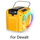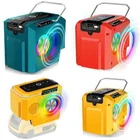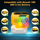 Note: The battery is no t included. Features: 【Fit for Makita /For Milwaukee /For Bosch /For DeWalt】: Plug in your own battery to enjoy the ultimate stereo sound! Low-voltage protection is our first concern. The speaker will automatically shut down if the battery voltage is below 15.5v to prevent any overload damage. 【Wireless Connection】--Wireless speaker features an extended wireless range (up to 52 feet) and enhanced connectivity. Portable speaker liberates clear high notes, deep bass and true HD sound through the 20W built-in speaker and works great with smartphones, cellphones, tablet PCs, laptop and so on. 【360° Stereo Sound】--Enables two portable wireless speakers to be connected in tandem. Let's enjoy a full 360° of loud 20W music in the home theatre, at parties, on the beach, in the park or anywhere else imaginable. 【Cool RGB LED Lights】--There are 7 types of lighting flashing modes, which dance with the music, and the flashing strobe makes music more dynamic and attractive. This cool colorful light can be controlled (long press to turn off/on, short press to change light mode). 【Multifunctional Interface】--mini speaker is functional with USB audio disk. USB-A/USB-C charging output port: DC 5V ≤ 2.4A. Wireless radio also has AUX input port: external audio source audio input interface. You can also play music from other devices using the AUX jack (not included). It's a perfect gift for music lovers and tech enthusiasts alike. Compatible battery models: √ compatible for 18V B series lithium battery,such as BL1850B(197285-8),BL1840B(197270-1), BL1830B(197602-2), BL1430B(197618-7), BL1820B(197487-6); √ compatible for BL1850, BL1840, BL1815N(196781-3); × NOT compatible for G Series battery such as BL1813G(196663-9), BL1413G(196882-7), BL1415G, BL1430G, BL1815G and so on × NOT compatible for 18v Ni-CD battery such as 1822(194465-7) Compatible for Dewalt DCB series 18V 20V lithium battery, including DCB200, DCB201, DCB202, DCB203, DCB204, DCB206 and 20V/60V battery DCB606 etc. Compatible for Milwaukee 18V Lithium-Ion battery: 48-11-1880, 48-11-1835, 48-11-1865, 48-11-1890, 48-11-1860, 48-11-1850, 48-11-1812,48-11-1840, 48-11-1820, 48-11-1815, 48-11-1828 etc. Compatible for Bosch 18V Li-ion Battery: BAT622, BAT609, BAT618G, BAT609G, BAT618, 2 607 336 170, 2 607 336 092, 2 607 336 091, 2 607 336 040, 2 607 336 208 Specification: Material:Plastic Special Feature:Usb type-c Port For Makita / For Milwaukee / For Bosch / For DeWalt 18V-20V Li-ion Battery Package include: 1 X Speaker ( no battery ) Please note: Batteries are not provided in this product.
