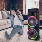 Unique Selling Points: 💯 TWS Function & Colorful Light Show :The pairing of two loud big bluetooth speakers are crazy, the 2800W stereo surround sound immediately invades your hearing. It can display 6 kinds of lighting effects jumping with the rhythm .The lights like flames and water can be switched back and forth, the colorful lights occupy your field of vision, and your heart beats wildly with the music. It's awesome Light Show! 💯 Large capacity battery & Bluetooth 5.0 : The powerful long-life 3600mAh battery technology Supports long play time and colorful light show. Bluetooth 5.0 technology can freely and easily connect your Bluetooth speaker to your smart phone(connection range of 32 feet). The 3.5mm audio aux cable is wired to smartphone, MP3, MP4, Computer, PC, TV and other non-Bluetooth devices with 3.5mm audio jack. 💯 Karaoke machine for kids adults - Karaoke Machine & PA System: this bluetooth speaker is equipped with karaoke system and PA system. It is recommended to use it with a microphone, so that the passionate singing can provide the best musical atmosphere and effect for your party. It can make your kids, family members and friends enjoy more happiness in life; It can also make the work of teachers, tour guides, dancers, etc. easier and more convenient. (The product include a microphone) Features: Portable Bluetooth Speaker,built-in bluetooth 5.0 wireless transmission, working distance up to 10m/32ft Compatible with all Bluetooth devices such as smart phones, tablet PCs Can match the personal computer, MP3,MP4, and is equipped with 3.5mm stereo audio output interface of the mobile phone and other audio equipment 2 speaker driver, big power 2800W, heavy bass guide tube design Support TF/SD Card music playback Support USB Flash Drive music playback Support AUX line-in connect Support FM radio, FM channel automatic or manual control Support for microphone connection Specification: Audio input: memory card/BT/FM/AUX Speaker Dimensions: 2 x 12" subwoofer Power supply: AC110-240V 50Hz/60Hz Output power: 2800W Frequency Response: 45Hz-18KHz Sensitivity: 85±2dB Battery capacity: 12V/4.5A rechargeable battery Colour: Black Package Includes: 1 x Dual 12" Wireless Party Speaker 1 x Microphone 1 x Remote control 1 x 3.5mm Auxin Cable 1 x Charging Cable 1 x Manual