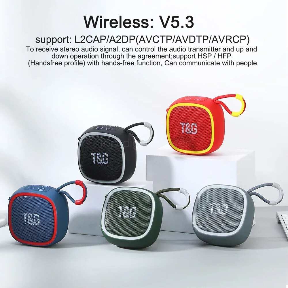 Features: 1.Adopt Bt 5.3 audio decoding chip, support all Bt devices connection. 2.TWS function, can connect two speakers at the same time by one mobile phone 3.Mesh cover prevents water and dust from entering the speakers. 4.Surround sound, shocking HIFI level sound quality, provide 360 degree stereo sound. 5.Talking function, noise-cancelling microphone, so that you do not need to touch the phone to answer the call. 6. Support FM radio, you can directly search the radio listening area. 7.Support TF card or Misro SD card, maximum 64GB, support AUX, support USB2.0 hard drive. 8.This bluetooth speaker is perfect for camping, travelling, hiking and so on. Warm tips: 1.In FM mode, plug in the micro charging cable or AUX cable to increase the FM radio signal. 2.If the speaker crashes during use, you can press and hold the power button for 8 seconds to reset and turn off. 3.If you insert USB/TF card, please use FAT32 format. 4.TWS: Keep both speakers in wireless mode without pairing. Press the ‘Play’ button on either speaker for 2-3 seconds until you hear a prompt and the indicator light stops blinking, it is now in TWS mode, then pair the phone. Specification: Product Name: Bluetooth Speaker Product Model: TG659 Bluetooth version: 5.3 Transmission distance: 10 metres Frequency Response: 120HZ-18KHZ Speaker Diameter: 52mm Output power: 5W Built-in battery: 3.7V/500mAh Charging port: Type-C Charging time: 2 hours Operating time: 4 hours (30% volume) Adjustment mode: button Playback mode: Bluetooth, TF card, U disk Product size: 90*90*55mm Product colour: black/blue/red/green/grey Product material: ABS Package Include: 1*Bluetooth speaker 1*User Manual 1*Tpye-C cable Attention: According to the light colour may vary! Please allow a slight 1-2cm difference due to manual measurement! Thank you for your understanding and attention, wish you have a pleasant shopping experience! On Nov 21, 2024 at 22:34:23 PST, seller added the following information: