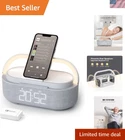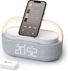 Bluetooth Speaker with Wireless Charger, FM Radio, Dimmable Bedside LED Night Light, Stereo Sound Dual Wireless Speakers, 2500mAh Portable Speaker for Home Decoration, Bedroom, Office, Gift 【6 IN 1 Multifunctional Alarm Clock Design】- You can get Bluetooth speaker+Digital Alarm Clock+15W Wireless Charger+FM Radio + 4-level adjustable night light + Holder. One item realizes all your desk and bedside needs and makes your messy desktop instantly clean. 【2024Fashionable Appearance for Home Decor 】- digital alarm clock made of quality materials with a touch top and fabric wrap round speaker, making it great for bedroom, living room, or kitchen counter. Its exquisite design is definitely a wonderful gift for someone you love. 【Adjustable LED Display Digital Alarm Clock】-The LED digital display clock offers 4-levels of brightness (dim, low, medium, and high), making reading the time easy. The alarm clock for bedrooms can adjust volume and has snooze mode, letting you rest assured to sleep. 【15W Wireless Charging & 2500mAh Battery Backup】-Intelligent charging protocol provides fast and 15W charging for iOS and Android devices. When using the wireless charging function, please plug in the power supply. 2500mAh rechargeable large battery can work for 100 hours for the lamp or 180 hours for the alarm clock. 【Powerful Dual Speakers & Bluetooth 】- wireless speaker with a thumping volume provides rich bass. Come to a hearing feast exclusively for you. The upgraded Bluetooth speaker provides a greater wireless range of 33ft which can connect normally under difficult conditions. NOTE: OUR NEW PRODUCT GUIDES AND DOCUMENT HAD UPDATED, PLEASE DOWNLOAD THEM FROM THE CLOCK PRODUCT PAGE. PLEASE CHARGE THE PRODUCT FOR 5 MINUTES WHEN FIRST TIME YOU GOT IT. Multifunctional & Multipurpose Audio Ultimate Life Experience Bluetooth Speaker has a built-in battery and a handle for easy carrying, allowing you to enjoy music and parties anytime, anywhere. By your side from morning till night You can use Portable Bluetooth Speaker any time of day. You will be woken up by Alarm Clock in the morning and check the time; when you have breakfast, you can use it as a Radio and listen to programs; when you are working at noon, you can put your on the Stand and check the news at any time; At night, you can play music; when you go to bed, you can turn on the Night Light and use Wireless Charging to charge your .