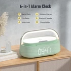 6-in-1 Alarm Clock: The smart alarm clock combines a bluetooth speaker, wireless charger, FM radio, digital alarm clock, adjustable night light, and phone stand all in one. Its integrated design caters to various needs throughout your day. 15W Fast Wireless Charging: Equipped with intelligent charging protocol, the alarm clock with wireless charging provides fast and safe wireless charging for compatible devices, Including iPhone16/15/14/13/13/12/11/X/8 all models and series, and AirPods/Pro/3/2. It also supports 10W wireless charging for Samsung Galaxy S21/S22/S23 series, etc. Easily Wake You Up: This alarm clock for bedroom not only has an alarm to wake you up on time, but also has a 5-minute snooze mode that can be set four times to ensure that you wake up on time after a short rest. Exceptional Bluetooth Sound Quality: The portable bluetooth speaker features the latest Bluetooth 5.0 technology, offering stable and rapid wireless connections up to 33 feet. Its dual speaker design delivers clear sound quality and rich bass. Seamlessly connect your smart devices and enjoy a smooth music experience anywhere in your home. Warm Night Light Function: The alarm clock bluetooth speaker comes with a touch-sensitive night light with three adjustable brightness levels: 30%/70%/100%, providing you with a perfect night light for reading, working, coaxing children to sleep, etc. at night, with warm-toned lights for the most comfortable visual experience and atmosphere Perfect Gift & Home Decor: Made of high-quality materials and exquisite design, this alarm clock radio is not only a perfect decoration for your bedroom, living room or kitchen, but also an ideal gift for special occasions such as Christmas, Valentine's Day, Mother's Day, Father's Day or birthdays.