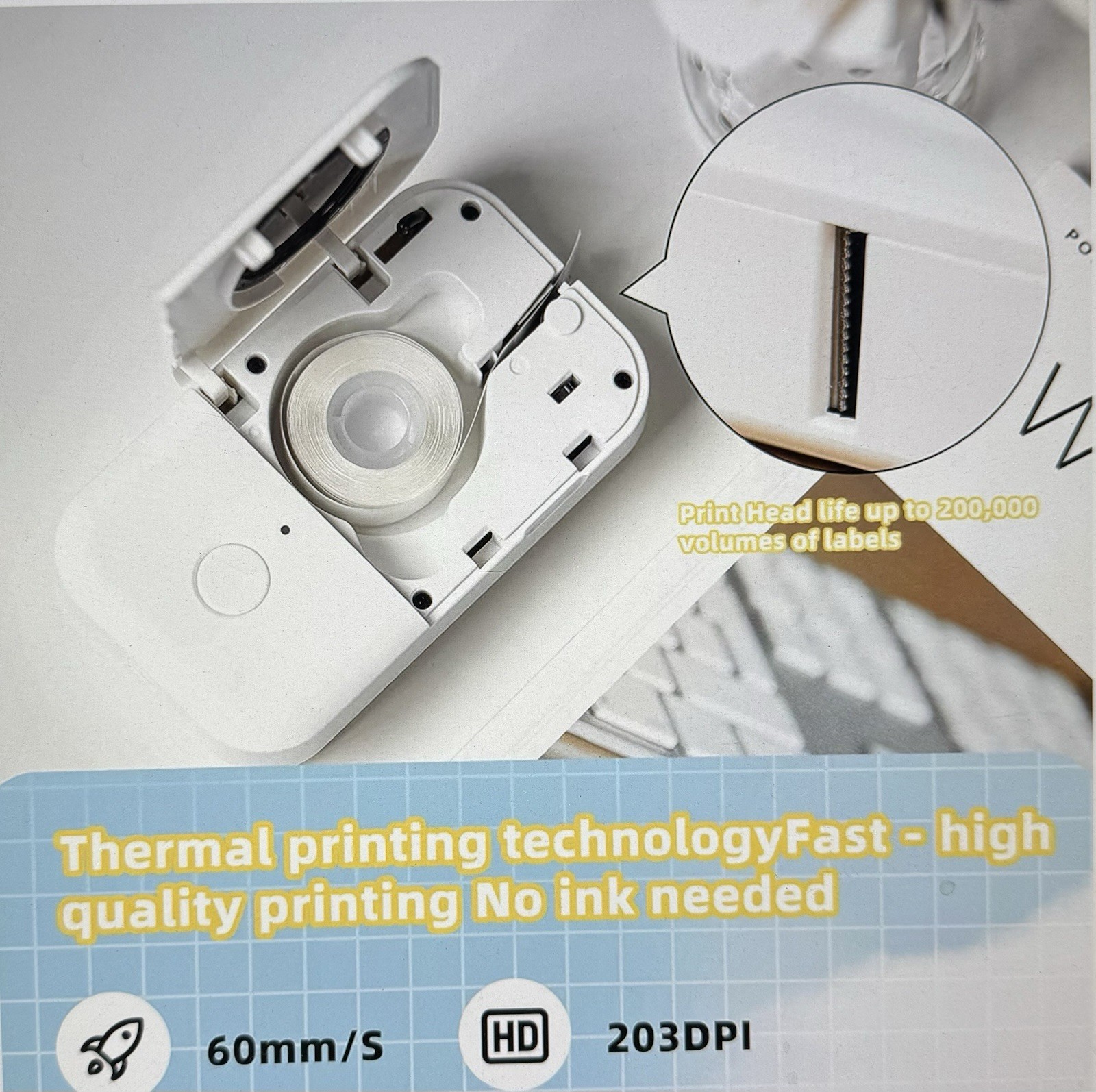 This label maker is a game-changer! Super easy to use with Bluetooth, and the print quality is crisp and clear. No ink needed—just pop in the tape and start labeling. Perfect for organizing at home or work. Compact size makes it great for travel too. Love how fast it prints, and the app is super handy. Definitely worth it!