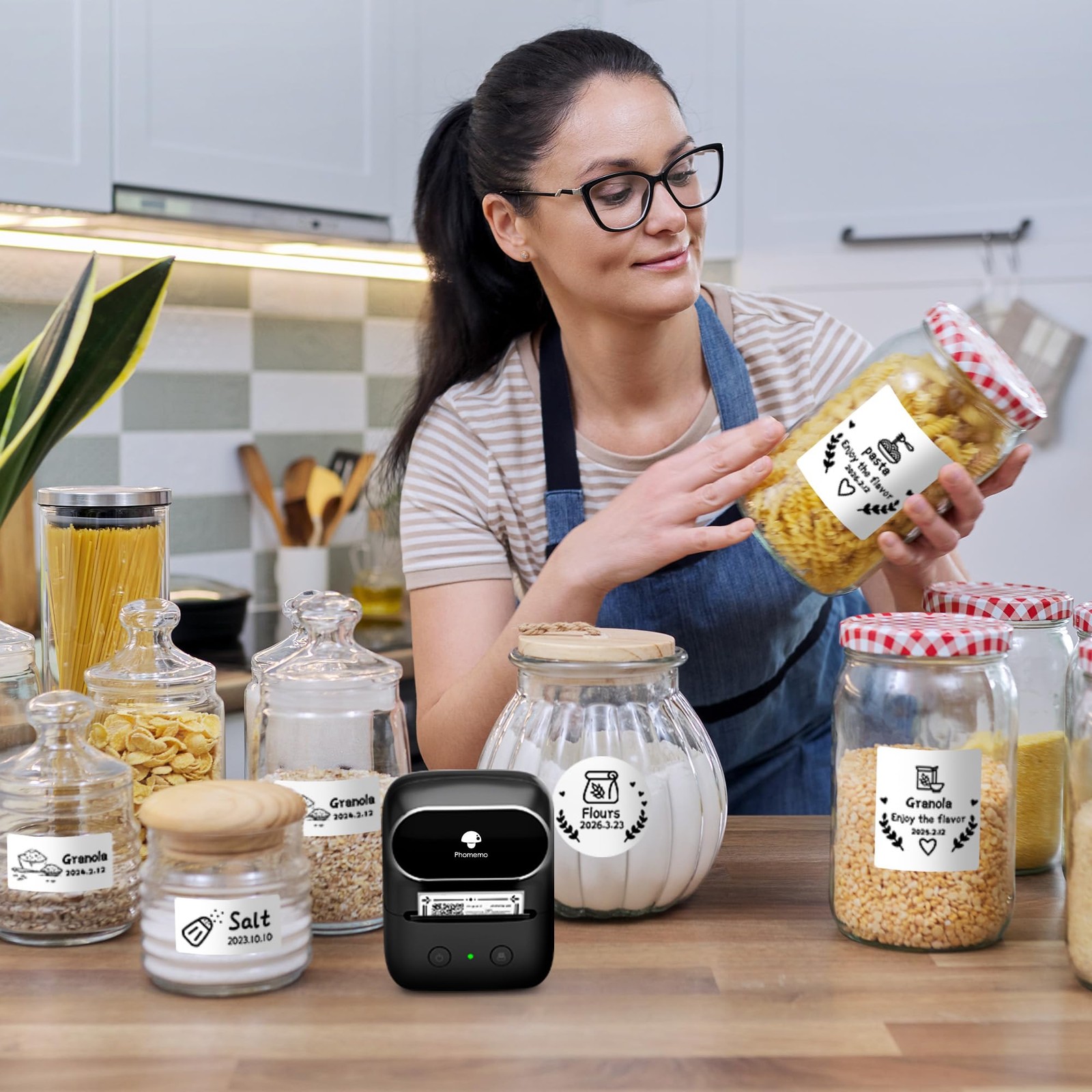 Label Maker Machine- M108 Bluetooth Thermal Label Makers for Small Business, Home, Office, 2 Inch Barcode Label Printer with Multi Templates, for Address/Logo/Clothing Labels, Black App-Enabled Bluetooth Label Maker- M108 Address label maker offers Bluetooth connectivity and is paired with “Print master” app. You can use 300+ Templates and 1000+ Icons. It enables the creation of professional barcode labels as well as personalized labels. The customization options provided ensure labels can be designed to meet specific needs Large Label Maker for Different Needs-Barcode label printer supports label sizes ranging from 0.78''-2'' (20 - 50mm), offering flexibility for different labeling projects. Whether labeling small jars or larger containers, the appropriate size can be selected to ensure legible and well-presented labels. This adaptability makes it suitable for a wide range of labeling applications Inkless Bluetooth Label Printer- M108 barcode label maker utilizes advanced thermal printing technology, eliminating the need for ink cartridges. This ink-free operation ensures efficient and clean printing. The printed labels are sharp and clear, meeting diverse labeling requirements such as product barcodes and home organization labels Versatile Label Maker for Small Business and Home- Portable Label maker demonstrates versatility, applicable to both home and small business settings. At home, it can be used for pantry organization, marking storage boxes, or labeling personal items. In small business, it aids in product pricing, inventory tagging, and creating labels for identification. It presents a practical solution for various labeling tasks Compact and Portable Label Maker- M108 Bluetooth label maker features a compact design, enabling easy portability. Its small size allows it to be carried conveniently, whether at home, in the office, or during travels. It serves as a practical tool for quick item labeling, suitable for various scenarios where on-the-go labeling is required