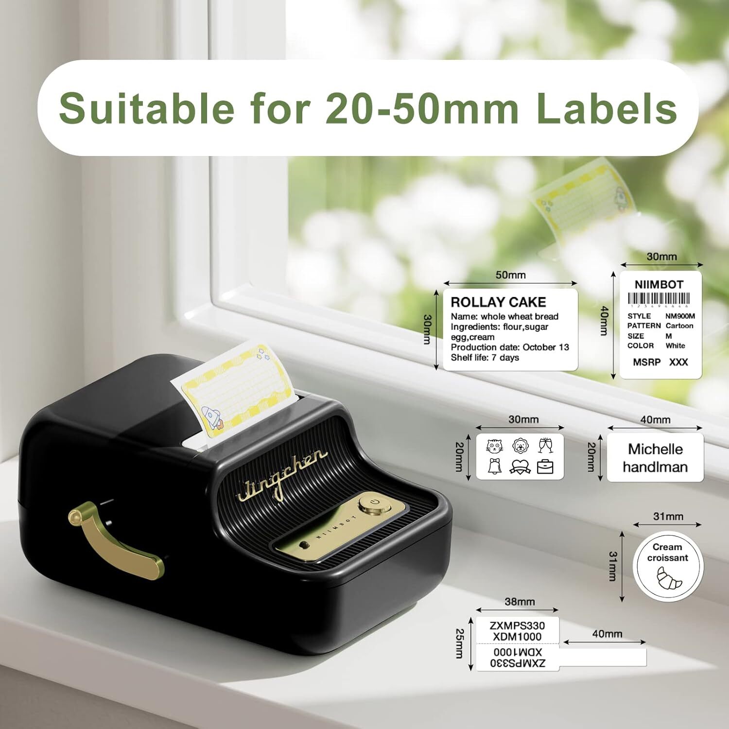 About this item 2 Inch Barcode Label Printer - Label maker with a stylish design and premium piano paint finish, easy to use with wireless Bluetooth connection. Simply download the app and connect the label machine through it. Does not require ink, toner, or ribbons, printing faster and clearer to save your time and money. 0.8-2 Inch Print Width - This barcode label printer supports 0.8''-2'' width labels, suitable for clothing stores, bakeries, jewelry, gifts, mailing, and small business owners. It is rechargeable and portable, allowing you to enjoy your business and life with a stylish and elegant label maker! Powerful App - Featuring various free templates, you can easily print any label you need, including clothing labels, price labels, cable labels, jewelry labels, address labels, folder labels, and more. This Bluetooth label maker supports image recognition, Excel batch printing, scanning and identifying 1D/2D codes, and can save print records for future use to improve work efficiency. Automatic Label Identification - This portable label printer uses intelligent identification technology to automatically recognize the label you insert. It supports a variety of label papers, such as white, round, color, and transparent. With an upgraded printing speed of 30-40 mm/s, it provides superior print clarity, smooth printing effects, and fast processing. Product dimensions: 2.76 x 5.91 x 4.33 inches