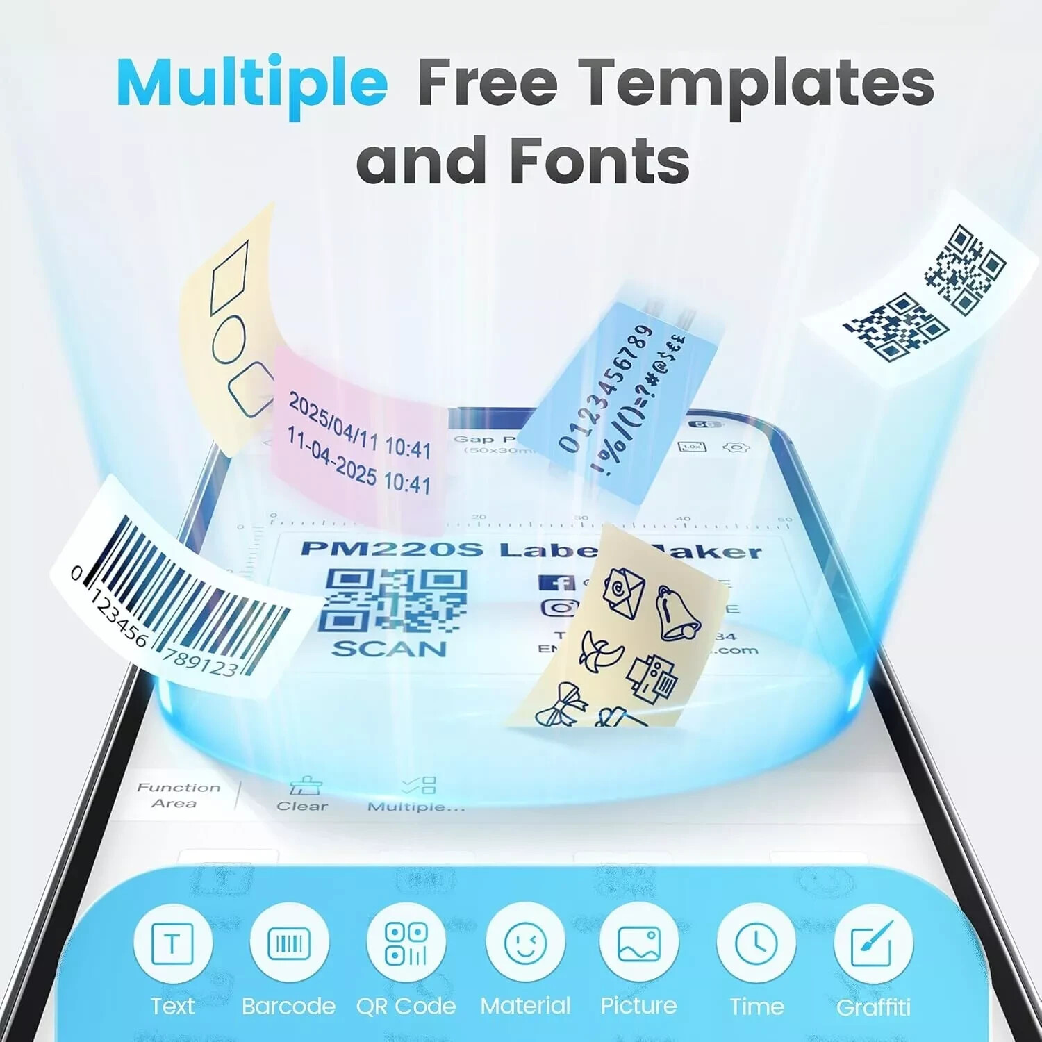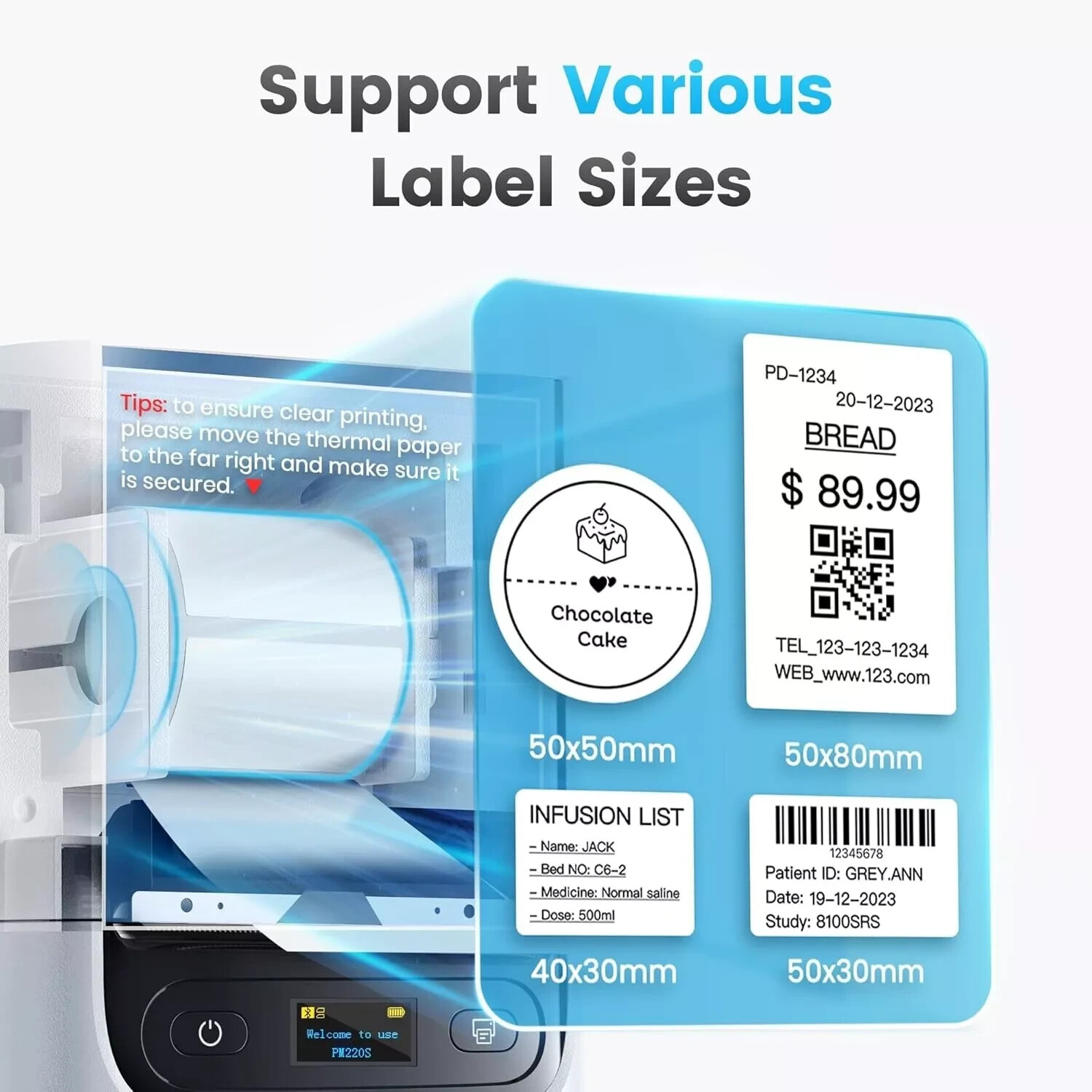 POLONO PM220S Label Maker Machine with Tape, 2 Inch Bluethooth Portable Thermal Label Printer for Small Business, Office, Home, Address, Logo Label, Sticker Printer for Phone/Tablet/PC, White About this item 【Easy to Use】PM220S Bluetooth Label Maker compatible with iOS & Android and PC. For iOS & Android mobile phone, please download the "Labelnize" APP to Print via Bluethooth. For PC, you need to download the driver and APP, please visit "polono.com" to obtain the PM220S label printer computer driver and APP. Notice: Please DO NOT connect directly via Bluetooth for all devices 【Interesting Screen Display】Label maker battery level is clear at a glance on this screen, and it has a special signal when it is connected to Bluetooth. In addition, it can also remind of paper shortage, set timed shutdown, etc. LED screens bring you a different label printer experience 【Powerful APP】PM220S label maker machine with tape comes with free label templates and can set up your own templates.The thermal printer allows you to customize and format labels, supporting various features such as QR codes, Barcode Labels, Tables, Materials, Time, Figures,Ttext, Icons, etc. This label printer APP included more than 90 +Fonts, 14+ Languages, 450+ Material 【High-quality Printing】POLONO Label Maker with BPA-Free Direct Thermal Technology. Equipped with high-speed chips and 203 DPI, you can enjoy high-definition without relying on ink or toner. Bluethooth Label Maker support label width 23-54mm(0.91"-2.12"). The label printer comes with a 50x30mm Label Tape placed in the paper bin. Notice:Adjust the paper slot to secure the label tape properly according to the label size 【Widely Use】PM220S thermal printer compatible with Smartphone & PC. Easily connect to your smartphone in just 5 seconds via 4.0 for fast and convenient printing. you can easily print any label you need like price labels, clothing labels, address labels, folder labels, date labels and so onIdeal label printer for a variety of festival labels need, including Christmas, Halloween, Thanksgiving, Father's Day, Mother's Day Previous page Next page Play Video Previous page