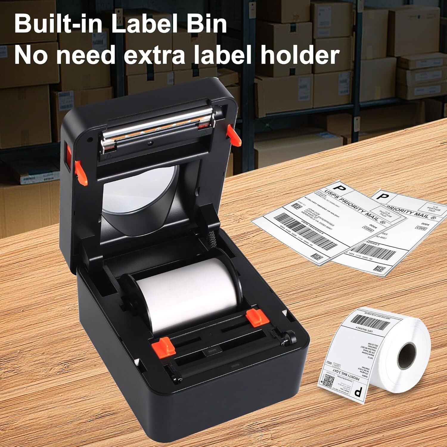 Bluetooth & USB Shipping Label Printer: Simply download the app on your smartphone for Bluetooth printing. With both Bluetooth and USB connectivity options, this shipping label printer allows you to easily connect and print from your smartphone, tablet, or computer. Note: All devices cannot be directly connected via Bluetooth and need to be used through the app. Fast and Efficient Printing for Small Business: Advanced thermal direct technology is adopted to achieve a printing speed of 160 mm/s. Fast and efficient printing for small businesses. High speed brings high efficiency and helps your business grow faster. Flexible Between Fanfold & Roll Papers: Equipped with a built-in paper bin that supports both roll label and fold label, allowing you to choose the most convenient option for your labeling needs. This Bluetooth thermal label printer is widely used for Amazon, eBay, Shopify, Etsy, USPS. Good Helper for Cost Saving: Supports the width of 20-104mm thermal labels, making the thermal printer suitable for various labeling tasks. 203 DPI ensures clearer printing. No ink, no toner, only thermal labels needed. Label size: label width ranges from 1.54" to 4.1" (40-104 mm), such as 4x6, 3x2, 3x1. Includes the printer driver, instruction video, and problem-solving video on the USB flash drive provided for easy setup. Test labels are also included. Product Dimensions: 9.6 x 9 x 5.5 inches