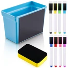 Advantages: Markers of black, red, blue, green, orange, yellow, purple, and pink, writing fluently, the pen cap possess mini eraser and magnetic, practical and convenient for writing, removing and storing. In the back of storage box with magnet for being attached on the whiteboard, improve your working efficiency and save the room for storage, plastic-made box that is lightweight and durable for long time using. Magnetic erasers can remove the writing smoothly and quickly, leaving no residue in the whiteboard, made of foam and felt, equipped with magnet back that can be stuck onto board long time without falling. Extensive usages: Utility set of small size and light weighty, suitable for office, classroom, even home, with magnetic quality that can be applied to whiteboard, refrigerator, cabinet, glass and such places of magnetic surfaces. Specification: Magnetic marker holder: Material: plastic Color: blue Size: approx. 5.12 x 2.76 x 3.43 inches/ 13 x 7 x 8.7 cm (LWH) Magnetic erasers: Material: foam and felt Color: yellow and black Size: approx. 2.76 x 1.57 x 0.79 inches/ 7 x 4 x 2 cm Magnetic dry erase markers: Material: plastic and ink Colors: black, red, blue, green, orange, yellow, purple, and pink Length: approx. 4.49 x 0.43 inches/ 11.4 x 1.1 cm Package includes: 1 x Magnetic marker holder 1 x Magnetic whiteboard eraser 8 x Magnetic dry erase markers Notice: Manual measurements, may exist slight size errors. Package content: offer you a complete set including 8 piece of magnetic markers in 8 colors, 1 piece of whiteboard eraser, 1 piece of plastic holder, convenient set for using as office or classroom supplies Markers of 8 colors: markers of black, red, blue, green, orange, yellow, purple, and pink, writing fluently, the pen cap possess mini eraser and magnetic, practical and convenient for writing, removing and storing Magnetic plastic holder: in the back of box with magnet for being attached on the whiteboard, improve your working efficiency and save the room for storage, plastic-made box that is lightweight and durable for long time using Magnetic erasers: can remove the writing smoothly and quickly, leaving no residue in the whiteboard, made of foam and felt, equipped with magnet back that can be stuck onto board long time without falling Extensive usages: utility set of small size and light weighty, suitable for office, classroom, even home, with magnetic quality that can be applied to whiteboard, refrigerator, cabinet, glass and such places of magnetic surfaces