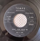 Bob & Earl, Don't Ever Leave Me (Soul version/Rock & Roll version), 7"-45rpm record, Tempe Records T-102-A. See pictures for condition. We will be listing multiple 45 rpm records from an estate buy. Some sealed and some promos mixed in. Low starting bid, no reserve, low buy it now. All will play through but may have some scuffing and/or background noise unless otherwise noted earlier in description. If you need more specifics on a record, please ask. If you purchase records and feel they were described improperly, or received with damage, let us know immediately and we will resolve to your satisfaction. Sometimes things get missed when dealing with large quantities of records. I try to add enough information and photos so that you know what you're bidding on but if you need more or something specific please ask before bidding. We will respond. If you have questions on items or shipping please ask. Thanks and good luck. SHIPPING DETAILS: 33 rpm LP's, Double LP's, and 45's-Shipping will be combined for 1-4 records, add $1 for each additional record. 78rpm records-Shipping will be combined for 1-3 records. Only 3) 78's can be shipped per mailer. Extra padding is required due to their fragility. For more than 3, mesaage for quote. Boxed Sets-Message for shipping quotes on multiple boxed set purchases. RETURNS: If you are not happy with your purchases for any reason, just contact me and we can get things resolved to customer satisfaction. Please try to refrain from leaving negative feedback without giving me a chance to resolve any issues.