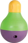 Exercises and feeds your dog at the same time. The Large bottom Chamber fits up to 3 cups of Food - enough for a full meal Adjustable openings at the top and bottom accommodate most types of dog Food and allow you to regulate the difficulty level Weighted anti-slip bottom makes the toy wobble erratically enticing your dog to play Every dog plays differently and, since not all toys are created equal, it’s always best to keep a close watch on your pup in case things get ruff. Supervised play will help toys last longer and most importantly keep your pal safe. No dog toy is truly indestructible, so always remove the toy from playtime if pieces begin to break off. Interactive toy holds up to three cups of food and has adjustable openings.