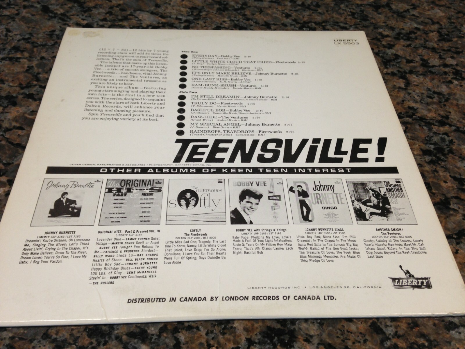 BOBBY VEE - THE FLEETWOODS JOHNNY BURNETTE - THE VENTURES Teensville (1962') LIBERTY records #LX-5503 ALL RECORDS ARE VISUALLY GRADED / TOUS LES DISQUES SONT GRADÉS DE FAÇON VISUELLE. The record is in: VG+ CONDITION. The cover is in : VG+ CONDITION. CANADIAN pressing I Can Combine Multiple Wins To Save You On Postage Costs Je Peut Combiner Plusieurs Achats Afin Que Vous Puissiez Économiser Sur Les Frais De Poste