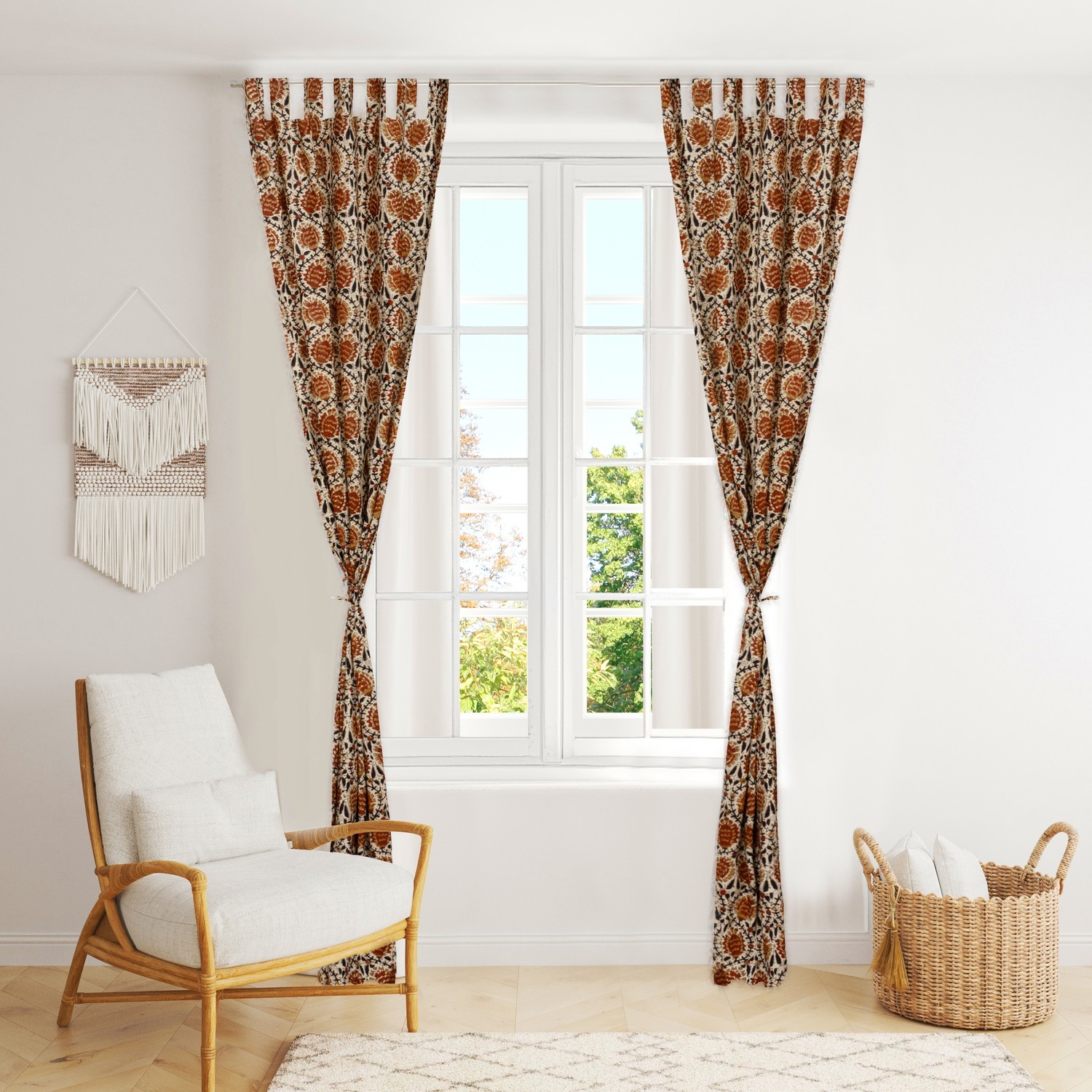 $ 32.0Bohemian Indian Floral Block Print Cotton Window Curtains (Set of 2)
