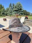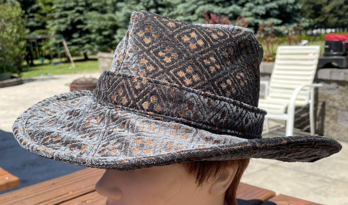 Boho Fedora Size M or 7 1/8 57 cm (22 1/2") inner circumference We measure using a hat sizing gauge for exact fit Hat made from upcycled upholstery fabric new fabric that was left over from a project lined with cotton We can make a similar hat in your size from our stock of Carhartt, Levis, Wranglers, etc., surface clean only. to reform the brim, straighten out the wire into a flat circle and and then gently form to your liking to restore body to the hat, get thoroughly wet and stuff crown with towels, lay brim flat on another towel, shape the crown seams to suit, and then let dry. Shape brim after drying. recent feedback on our hats: Great hat~unique and definitely OOAK! Great look! Thank you! Great hat~so unique! Packaged nicely, delivered fast!Thank you! What a wonderful seller to deal with. Thank you. 5 star Ebay seller very nice !! I love the HAT !! great fit and colors !!! Great product and great seller! Awesome seller fast shipping will buy from seller again I love the Carhartt cowboy hat so much I bought two more. Great hat! Packaged nicely, delivered fast!Thank you! inv:a6b4e alexis