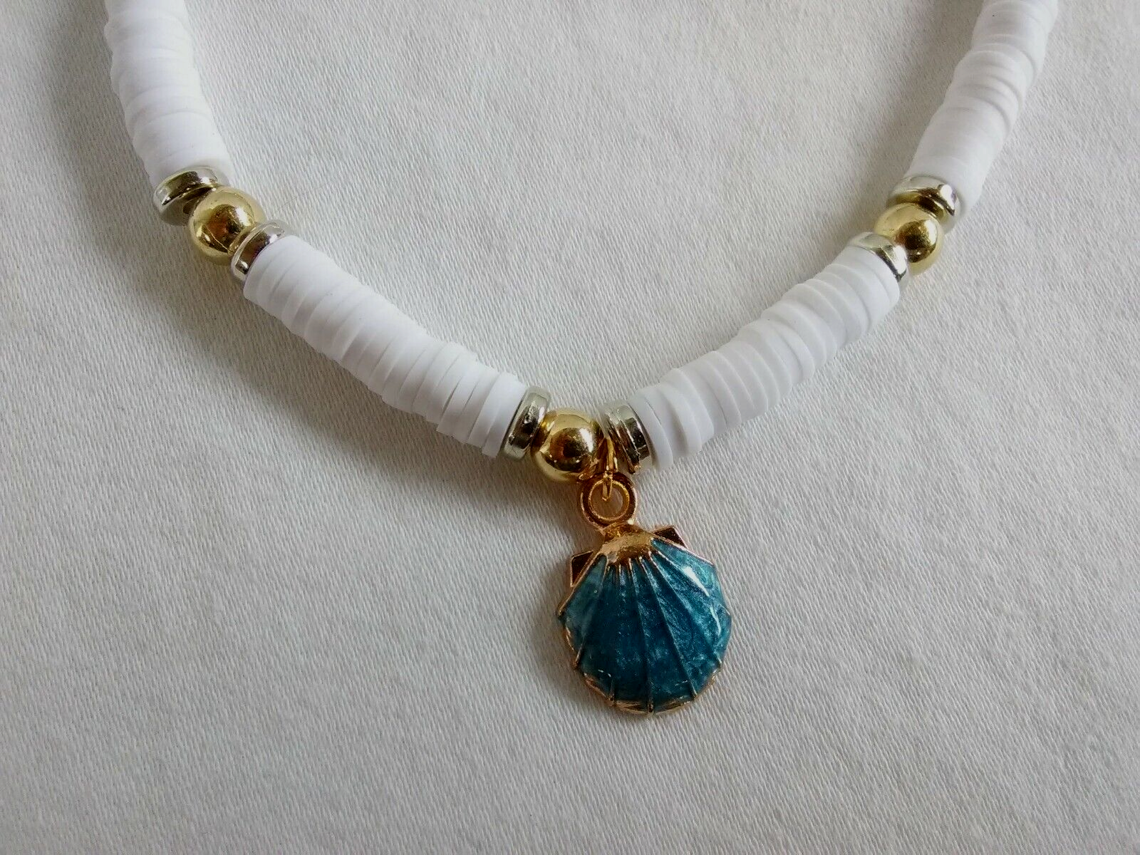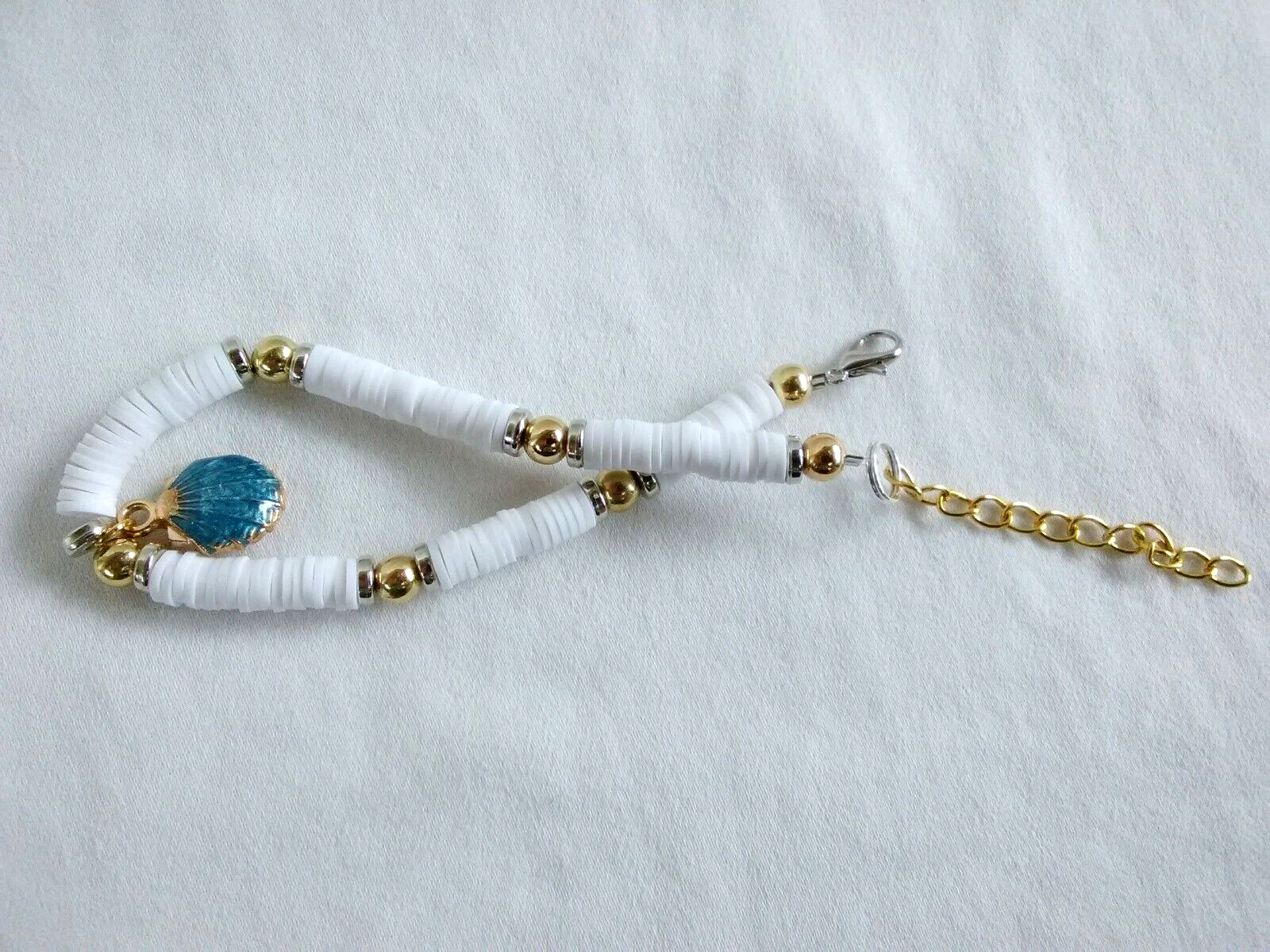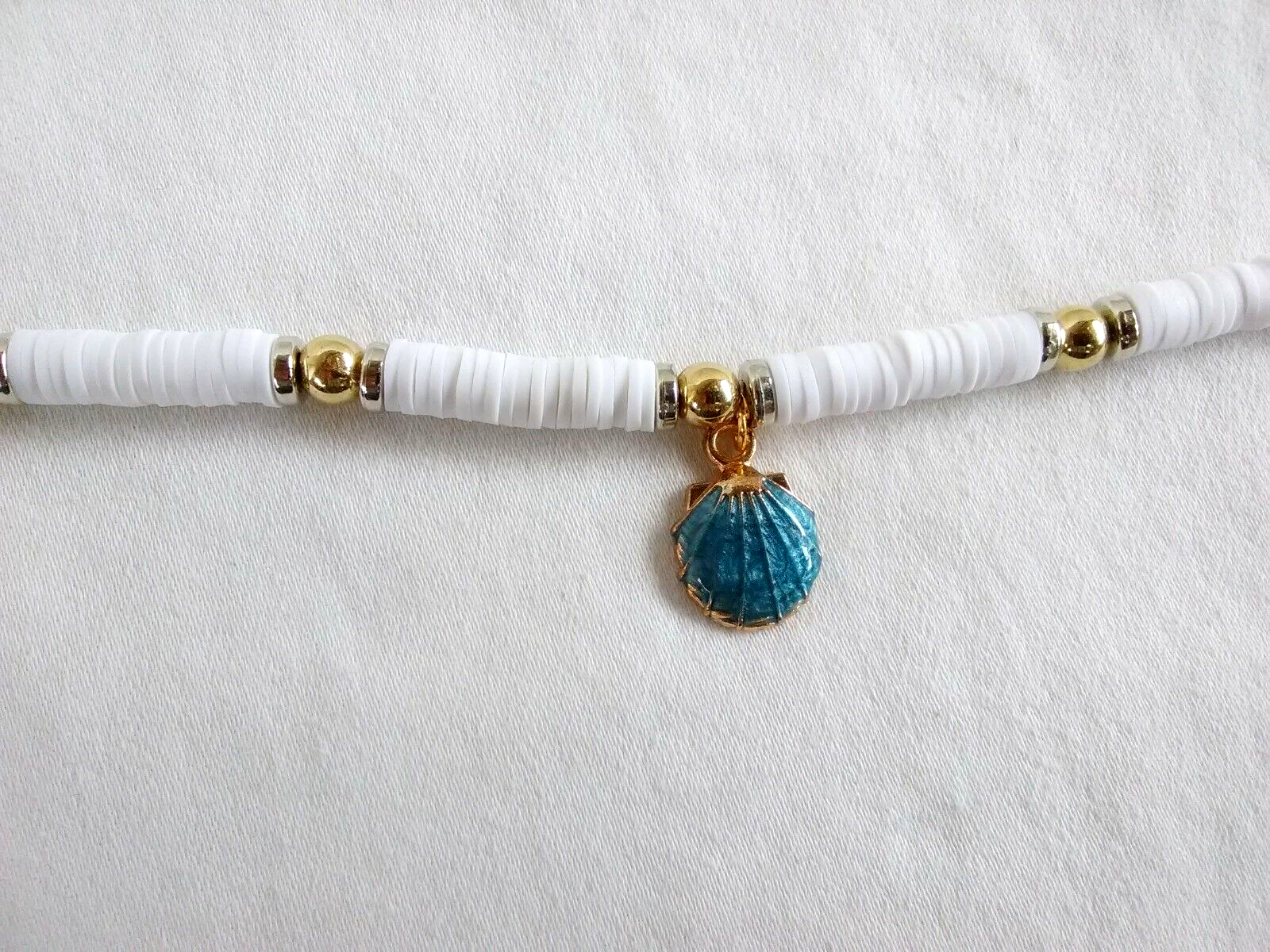 NWOT Handcrafted.Gold tone blue seashell charm 8-10 inch heishi disc beads boho bohemian trendy beach wear anklet ankle bracelet or wear it as bracelet . Ladies women teen teens girl girls boho bohemian mermaid anklet ankle bracelet. Beach spring summer fashion ankle bracelet/bracelet.Gift for her. Beach vacation travel tropical holiday fashion jewelry.
