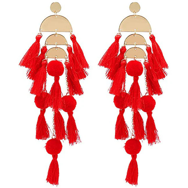 Title Boho Long Tassel Fringe Earrings PRODUCT DESCRIPTION Elevate your accessory collection with our stunning Boho Long Tassel Fringe Earrings, designed to add a touch of bohemian elegance to any outfit. Crafted from environmentally friendly and safe materials, these earrings ensure comfortable wear without compromising style or sustainability. Handmade with vibrant attention to detail, each pair features bright, colorful tassels available in shades including brown, black, red, pink, white, blue, and green. The lightweight construction guarantees all-day comfort, making them perfect for prolonged wear during any occasion. Mesmerizing design combines sleek, modern elements with timeless elegance, creating a versatile accessory suitable for both casual and formal events. Whether you’re attending a wedding, party, prom, or night out, these earrings will effortlessly amplify your look. Multiple color options to match any outfit or mood Perfect gift idea beautifully packaged in a jewelry box—ideal for loved ones such as mothers, girlfriends, or friends Variety of occasions from elegant evening events to lively celebrations Upgrade your style today with these charming boho tassel earrings and make a memorable impression wherever you go. Add to your cart now and embrace a unique, fashionable look that truly stands out! Powered by