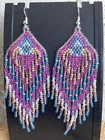 1 pair of pink, purple, blue and gold seed bead earrings. You will receive earrings pictured. The earrings are handmade with seed beads.The earrings are approximately 4" long with the ear hooks included. They are for pierced ears. 0-ea-seed027-1