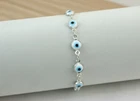 Boho Silver Tone Blue Evil Eye Bracelet | 925 Silver Plated Brass Chain | Light Blue Protective Charm Bracelet | Handmade Designer Jewelry Infuse your jewelry collection with vibrant protection and a sleek, modern aesthetic. This evil eye bracelet features a delicate minimalist chain in a polished silver tone, beautifully adorned with a sequence of serene, light blue enamel charms. This modern ethnic-inspired design highlights exceptional beauty, craftsmanship, and how it enhances any outfit, from casual daily wear to festive celebrations. ✅ Made from premium quality brass metal, plated according to its color tone — gold-plated for gold color, silver-plated for silver tone. ✅ Designed using artificial stones and decorative materials for a luxurious yet affordable look. ✅ Secured with a sturdy lobster clasp and an extender chain for easy wear and adjustable sizing. ✅ Nickel-free, lead-free, and skin-friendly — safe for all-day wear. ✅ Perfect for daily wear, festive occasions, parties, and gifting. ✅ Carefully handcrafted with detailed finishing for long-lasting shine. ✅ Adjustable design ensures comfort and perfect fit for all ankle sizes. ✅ Available in custom sizes on request. ✅ Can be made as a matching jewelry set — Anklet, Bracelet, Necklace, and Earrings. ✅ 📩 Contact us to place a set order and get exclusive discounted pricing. This exquisite evil eye bracelet adds a touch of elegance, sparkle, and sophistication to any look, keeping you stylish and protected with every movement. blue evil eye bracelet, light blue charm, boho bracelet, silver plated bracelet, handmade bracelet, ethnic bracelet, charm bracelet, brass bracelet, trendy bracelet, adjustable bracelet, bracelet for women, fashion bracelet, designer bracelet, statement bracelet, jewelry set