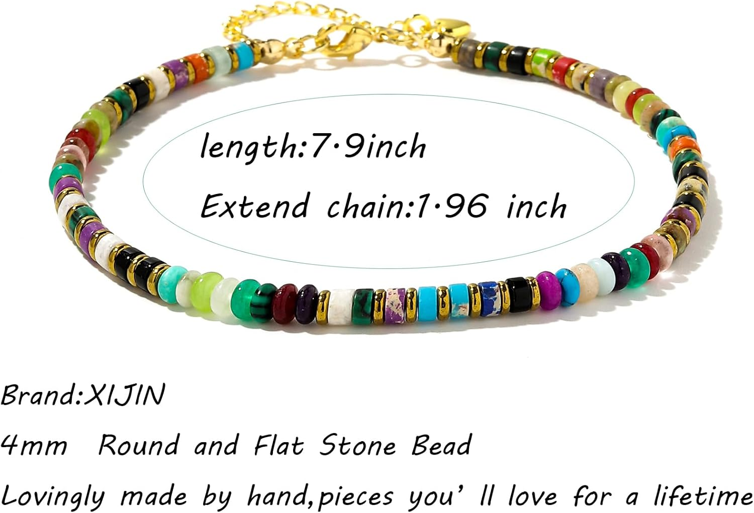 Menu Other Items Feedbacks About Us Contact Us Add To Favorites Natural Stone Beaded Anklets for Women Handmade Beach Boho Turquoise Beads Ankle Bracelet Jewelry Gift for Her Product Description XIJIN JEWELRY Handmade Beaded Anklet 4mm Stone Beads Ankle Bracelet for Women Jewelry Type: Simple natural stone beaded anklet for women teen girls. Style: Handmade beaded stone anklet; Simple and dainty beaded anklet Brand: XIJIN Color: We've added turquoise color dazzling colors to our beaded anklet range. Package: 1Pcs dainty handmade beaded anklet with black gift box. Size: Oblate stone beaded anklet length 7.9 inch with 1.96 inch (5cm) extended chain. Quality: Light, durable, sturdy metal chain and comfortable to wear, not easy fade. Charm Stone Beaded Anklet for Women Our curated collection of women’s beaded anklet was made to be gifted – to loved ones and to yourself. Anklets are bracelets that are worn around the ankle. They are perfect for casual events or warm weather outings, and they look great with bikinis and summer sandals. Step into the world of boho-chic with these beautiful beaded anklet. Many Styles for You to Choose From Item Specification Metal stamp 925 Chain Braided Chain, Bead Chain Gem Type no gemstone Color H Material Metal Metal Stainless Steel Setting Bead Setting Item Length 7.9 inches Department womens Clasp Lobster Claw SHIPPING FREE FAST SHIPPING FREE SHIPPING We are always working hard to ensure your package arrives as soon as possible. Please understand that some factors like weather, high postal traffic, and the performance of shipping companies are outside of our control. We offer free shipping to the lower 48 states. We do not accept P.O. Boxes. Please provide a physical address. If you have a problem or question regarding your transaction please contact us immediately. We will work with you to resolve any problem you may have. Thank you
