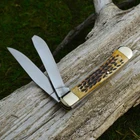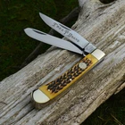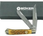The Boker Ts Trapper Pocket Knife is a traditional pocket knife built with premium components. 440C steel makes the blade durable and reliable. Finger grooves crafted into the handle give you superior control while also making the handle feel nicer. An elegant brown handle completes the look, giving the knife an eye-catching appearance. The lock back mechanism ensures that your fingers are always safe when dealing with the knife. The Boker Ts Copperhead Pocket Knife comes with a brown leather sheath for all-purpose carrying. The blade is 3 inches long, with an overall length of 6 1/2 inches. It weighs 4.8 oz. Limited lifetime warranty. A chestnut tree is the world famous trademark of the Boker knife manufactory in Solingen, Germany. It represents innovative, high quality, exceptional knives, manufactured with pride, by hand, for over 145 years. Durable and sharp 440C stainless steel blade Authentic brown bone handle scales Nickel silver bolsters and brass linings Blade length: 3 inches. Overall length: 6 1/2 inches Weight: 4.8 ounces Limited lifetime warranty